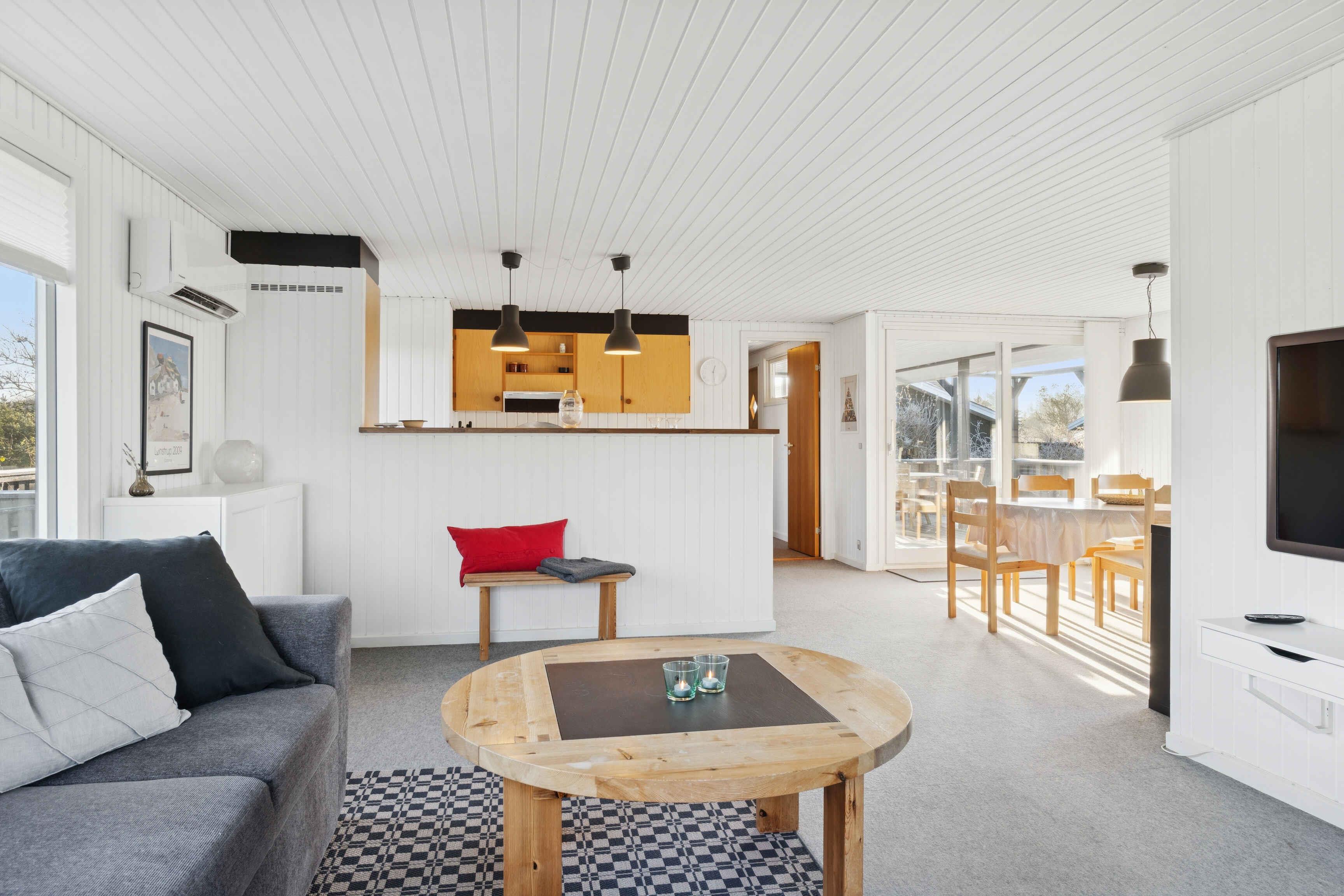 Velindrettet sommerhus på 108 m² med tre soveværelser og plads til seks personer. Lyst køkkenalrum, hyggelig stue og stor terrasse i rolige omgivelser tæt på strand, natur og byliv – perfekt til afslappende ferier.