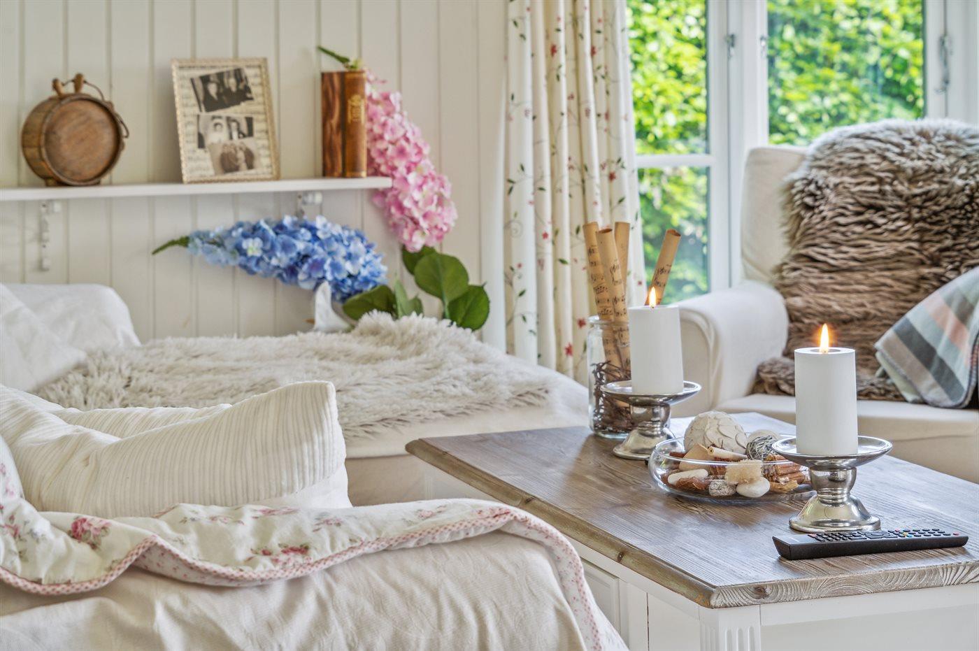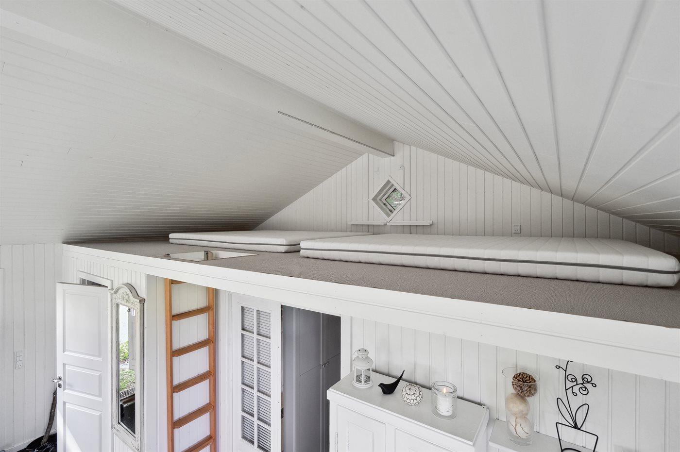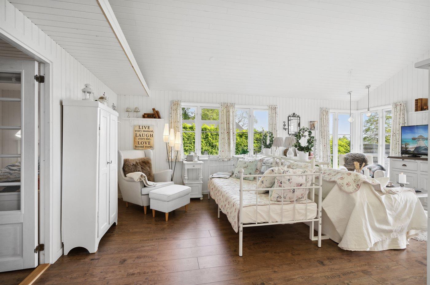 Der er i alt 1 soveværelse. Sovepladserne fordeler sig på: 2 sovepladser i dobbeltseng. 2 sovepladser på madrasser. 2 af disse sovepladser befinder sig på husets hems.