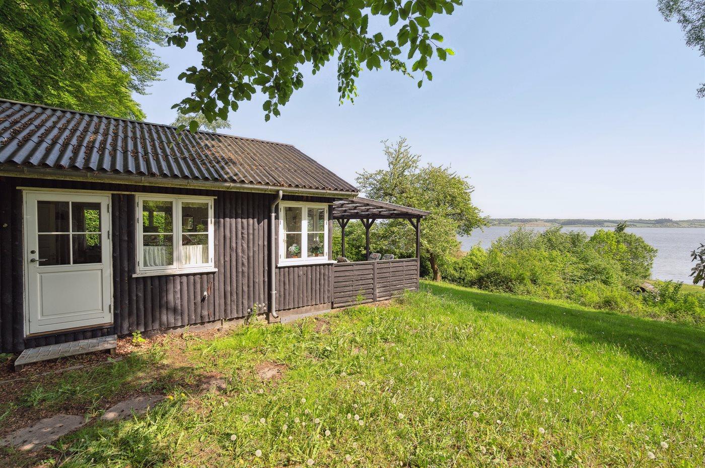 Ferieboligen er beliggende på en 2760 m² stor grund i skov/plantage. Der er 100 m til fjorden. Nærmeste forretning er beliggende i en afstand af 5000 m. Desuden er der 15 m² overdækket terrasse. Til ferieboligen hører åbent terrasseareal. Parkering ved ferieboligen.