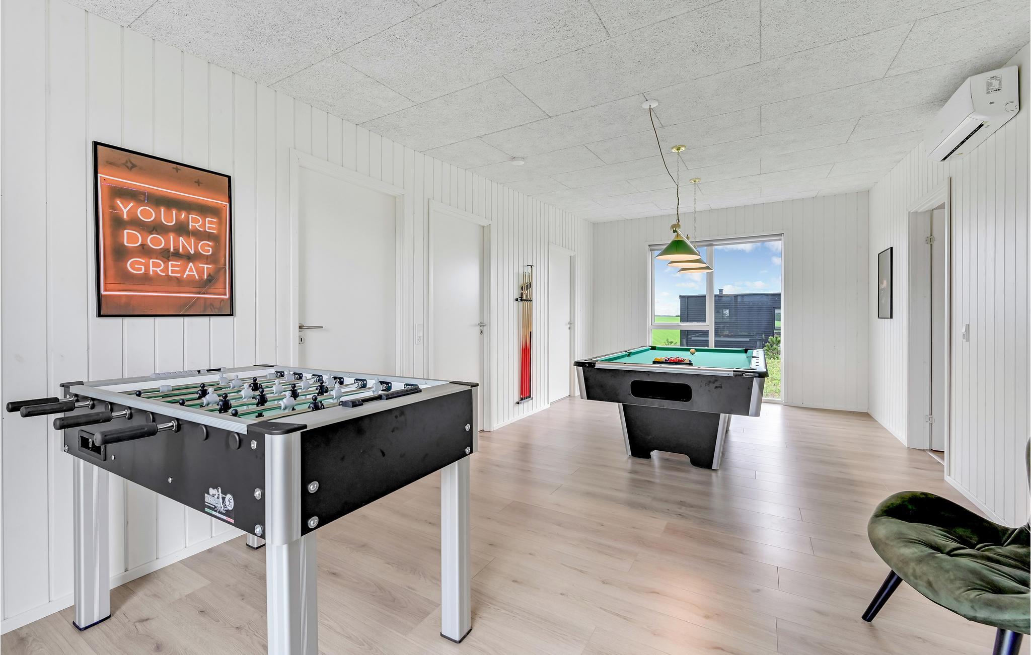 Den åbne indretning lader jer nyde hinandens selskab mens nogle er i køkkenet og andre spiller spil eller slapper af i sofaerne. De store vinduespartier sikrer et fantastisk lysindfald, og giver jeg mulighed for at nyde de grønne omgivelser, selv når I er indendørs. Poolbordet står i gennemgangsrummet, hvor I kan udfordre hinanden til en kamp. På den store overdækkede terrasse kan I sidde på de varme sommerdage og nyde skyggen og en god bog. Om vinteren vil I også finde jer godt til rette her, fordi overdækningen sørger for varme og ly for vejret.