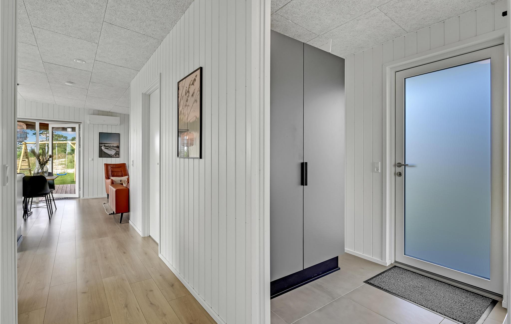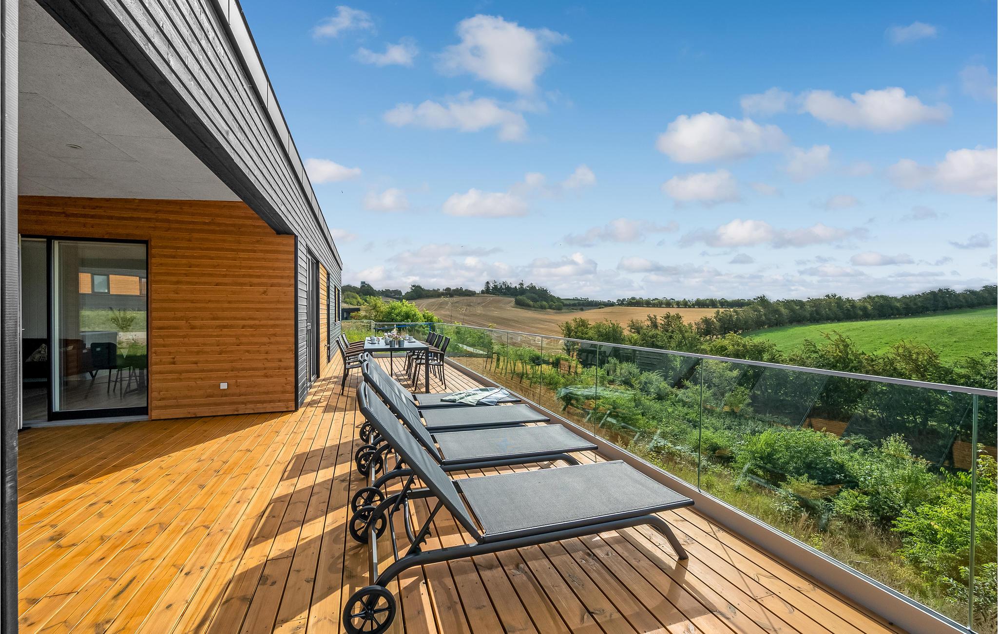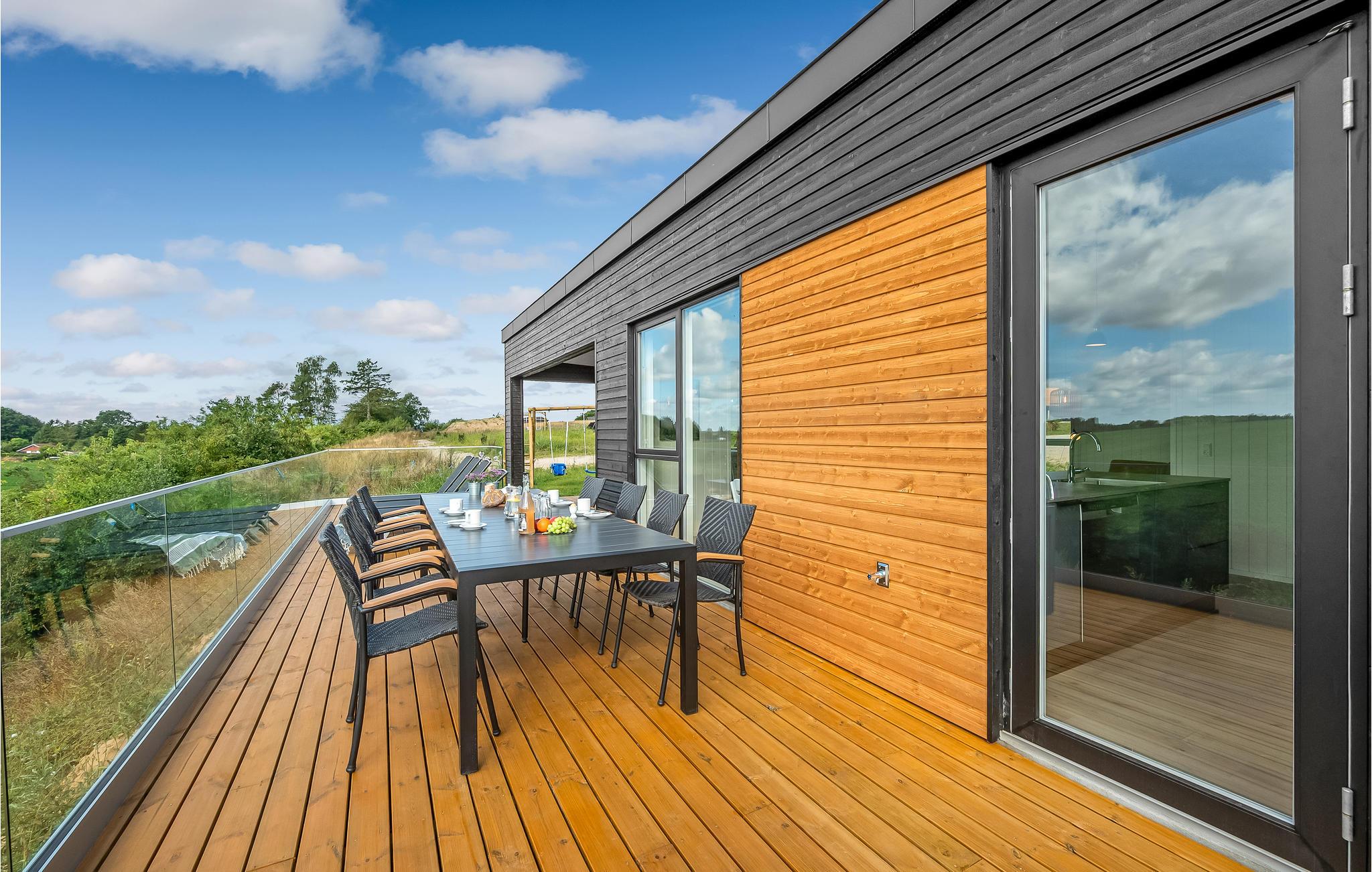 Glæd jer til ferien i dette smukke feriehus, der kombinerer moderne elementer med hjemlige detaljer. Takket være det åbne opholdsrum og den store vinduesfront fordeles det smukke lysindfald og giver jer et rummeligt og lyst rum, hvor I hurtigt vil føle jer hjemme. Træd også ud på den delvist overdækkede og åbne terrasse i den velplejede have, hvor I kan nyde et friskgrillet måltid eller en opkvikkende morgenmad. I kan også slappe af i boblebadet, mens de små gæster hygger sig med havens legefaciliteter, såsom gynge og klatretårn.