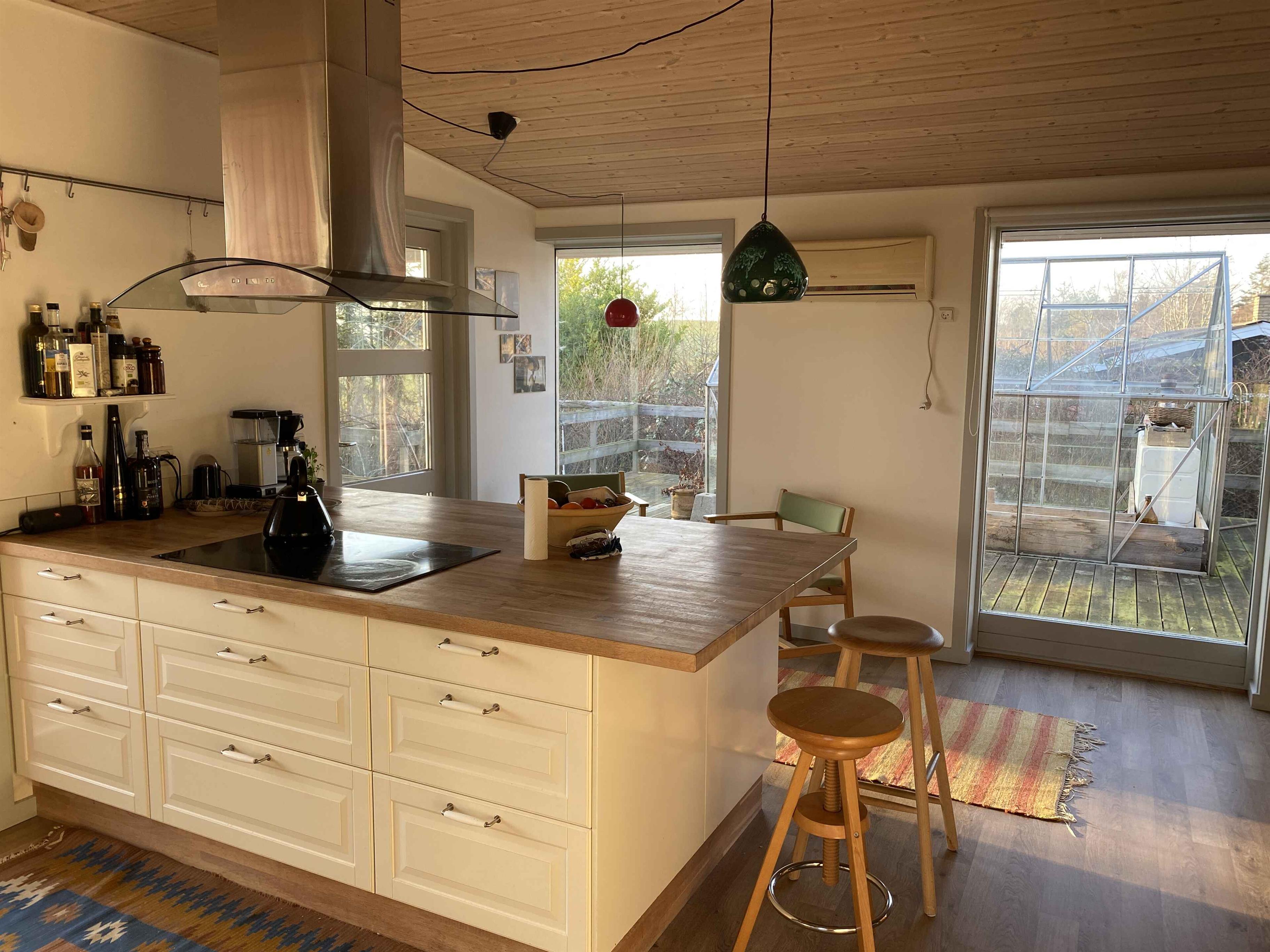 BEMÆRK: DENNE BOLIG UDLEJES KUN TIL 6 PERSONER FRA APRIL TIL OG MED SEPTEMBER. FRA OKOTBER TIL MARTS UDLEJES BOLIGEN KUN TIL 4 PERSONER. Lyst og rummelig sommerhus med stor solrig terrasse og have. Dejlig beliggenhed i sommerhus område tæt på færge, vand og indkøb. Der er mulighed for at låne cykle til at cykle øen rundt med. I alt er der 6 sovepladser indendørs (hovedhus og anneks) og 2 sovepladser mere i shelter, der er familiens foretrukne soveplads om sommeren. Huset byder på: - To soveværelser, begge med dobbelt seng. - Rummelig stue med stereoanlæg, fjernsyn, WIFI, brændeovn og massere spil. - Fuldt udstyret køkken. - Spisebord og stole op til 10 personer. - Badeværelse med brusebad - Sydvendt terrasse med weber kuglegrill - Anneks med dobbelt seng, samt bord og stole. OBS!! Anneks er lukket i vinter perioden (okt-mar), derfor kun fire sovepladser i hovedhus om vinteren. - Shelter med dobbelt seng - Have med bålplads, legehus og gynger - Udendørs vaskerum med vaskemaskine og tørretumler Derudover er der mulighed for at slå en ekstra seng op for familiens mindste. Obs, udlejes ikke til erhversmæssigt brug.