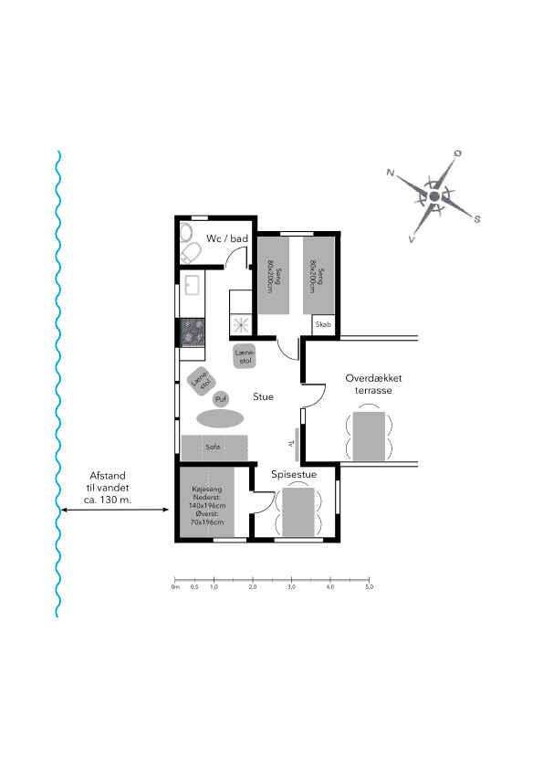 Afstande fra ferieboligen og placering på kort