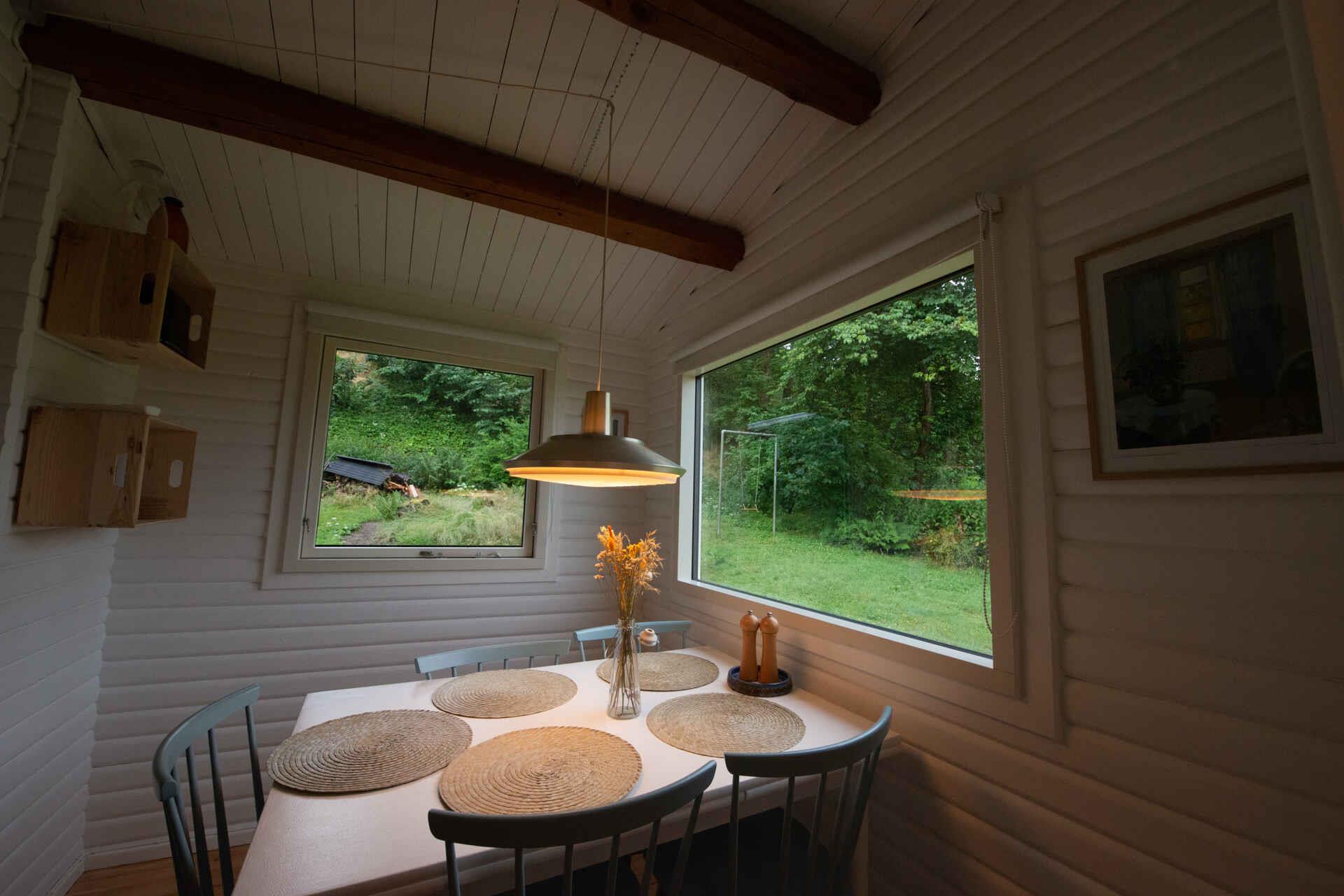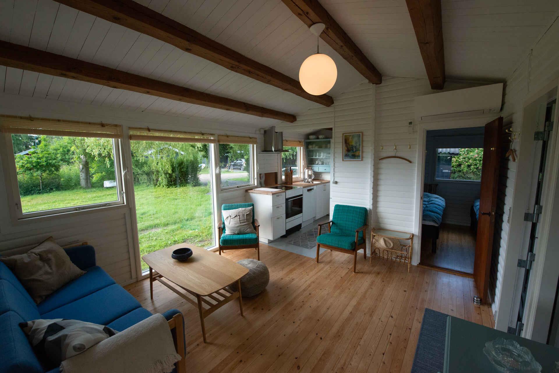 Sommerhuset, beliggende for enden af en stille vej, er omsluttet af natur. Mod vest og nordvest træder Lammefjorden og kystområdet frem. Her byder landskabet på skønne strandenge. Terrassen mod syd garanterer solskinstimer, og når dagen ebber ud, betages man af solnedgangen over fjorden fra april til august. Indendørs venter en integreret spise- og opholdsstue, hvor vandet ligeledes trækker blikket. Med to soveværelser, hvoraf det ene har en overkøje, tilbyder huset plads til fire voksne og et barn. På de 42m2 er der også et veludstyret køkken, som intet lader mangle. Udenfor lokker den grønne græsplæne til leg, mens et bålsted med brænde inviterer til hyggelige aftener. Kort herfra finder du Kisserup Strand. Den børnevenlige kyst er kompletteret med en lang badebro om sommeren. For den luksusglade er der et opvarmet vildmarksbad med panoramaudsigt over fjorden. Læg dertil parkeringsmuligheder, nem adgang til offentlig transport, og huset bliver den perfekte base. Huset er et blokhus bjælkehus, og om vinteren skal man være opmærksom på at der kan være fodkoldt, så man bør medbringe et par sutsko eller tykke sokker. Der er dog både varmepumpe, gulvarme i badeværelset og elradiatorer i alle rum, så det er ikke et problem at varme huset op. Bemærk: Sikkerhed er prioritet, så hold øje med de yngste nær grøften og skrænten. Kom og oplev roen, naturen og skønheden ved sommerhuset.