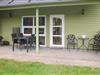 Hyggeligt træhus i Holme Å hytteby nær Billund med overdækket terrasse og gode fiskemuligheder.