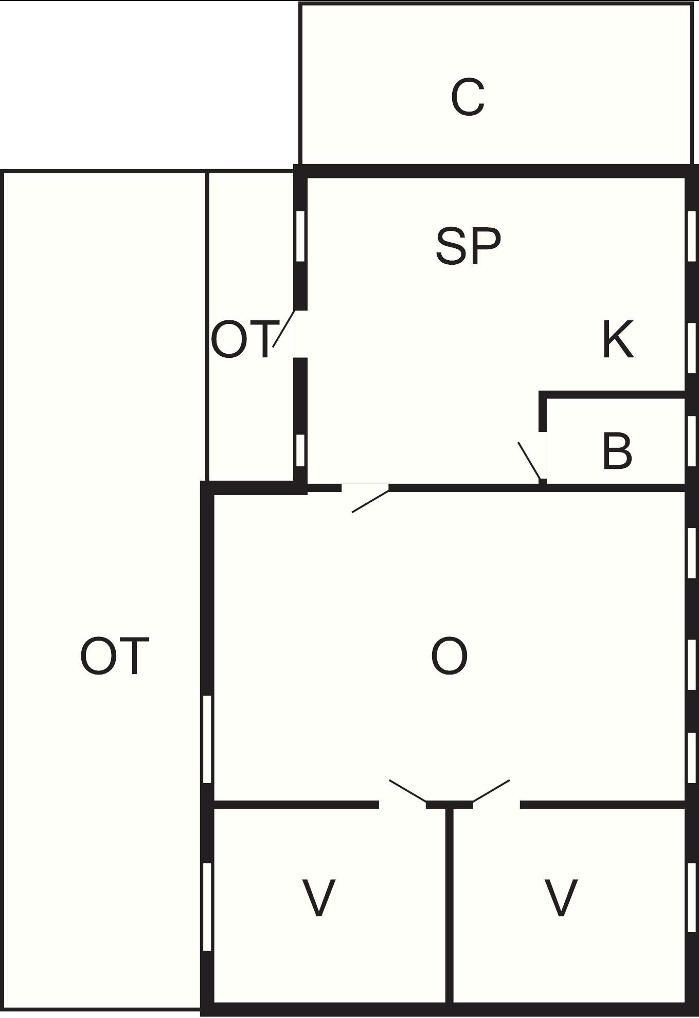 2 Soveværelser: (1DS)+(1S+1O), barneseng