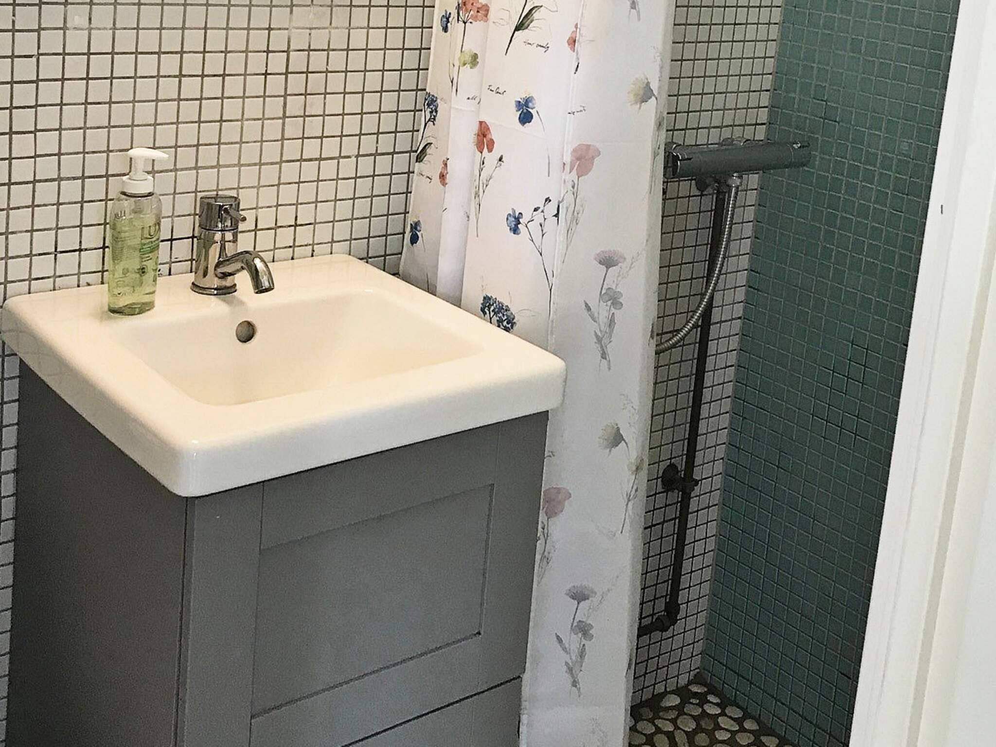Minibadeværelset er belagt med runde Strandsten. Et lille stemningsfuldt hus, som er et godt udgangspunkt, for ture til stranden og mange spisesteder i Hornbæk. Der er kun 15-30 min køretur til Gilleleje og Helsingør.