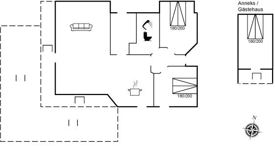 Til huset hører et anneks, hvor 2 af sovepladserne befinder sig, og hvor der her ligeledes er mulighed for at koble sig op på det hurtige fiber bredbånd over LAN-kabel eller WiFi. I huset er der gulvvarme på badeværelset, i gangen og i bryggerset, samt et moderne varmepumpeanlæg, der sikrer en energivenlig opvarmning i de kolde måneder eller køling i de varme måneder.