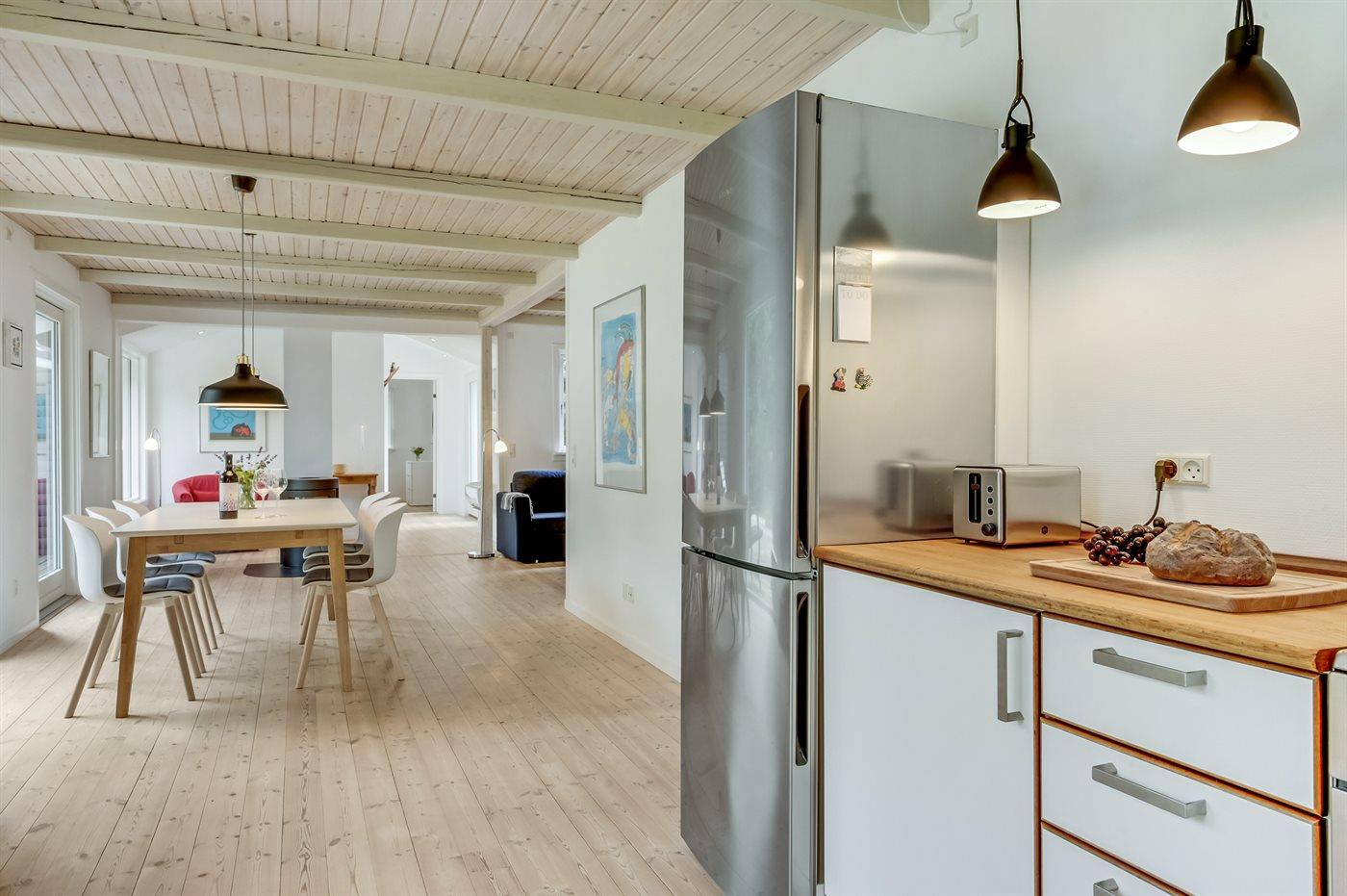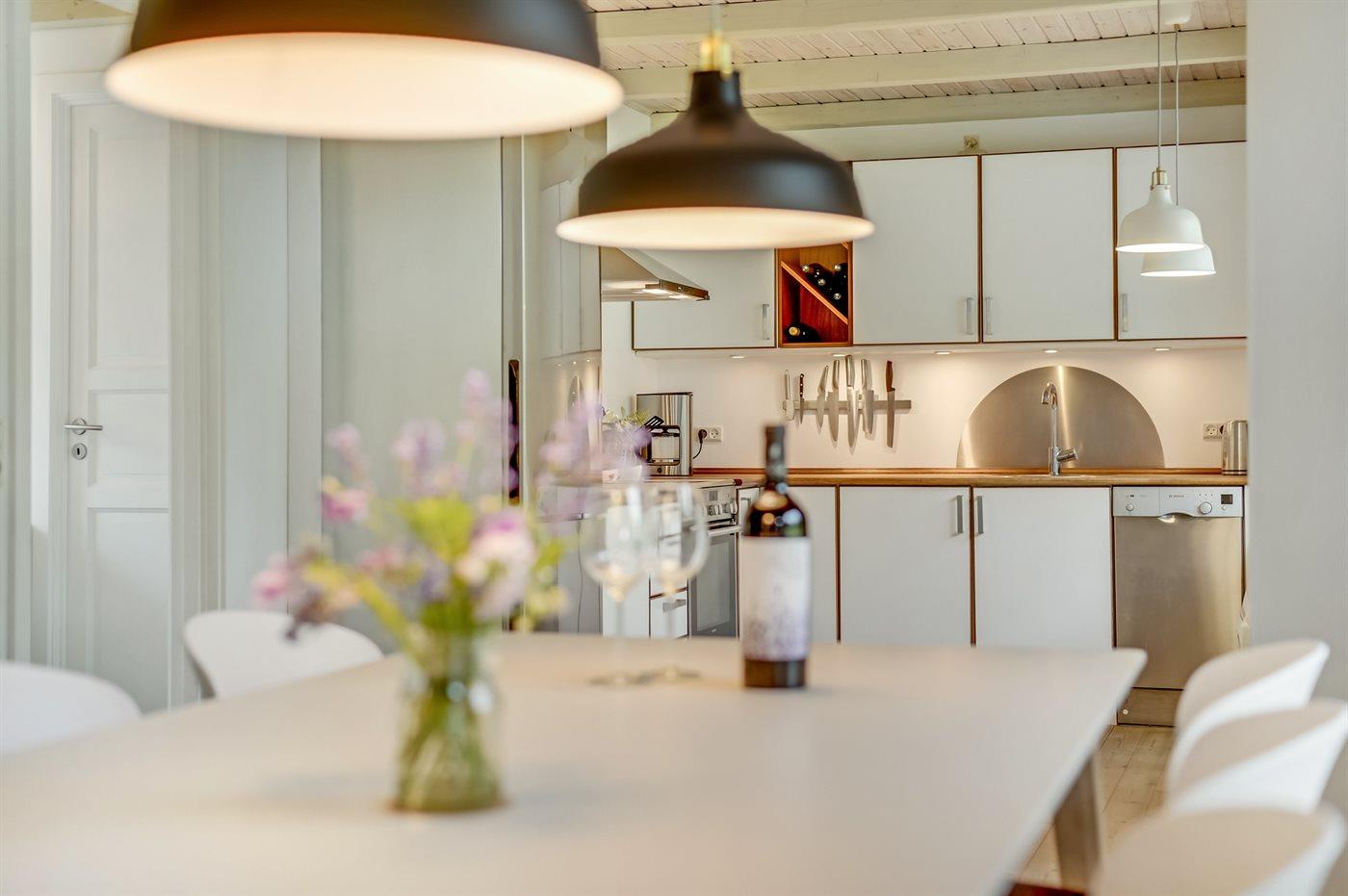 Køkkenet er udstyret med 1 køleskab. Der er 4 keramiske kogeplader, varmluftovn samt opvaskemaskine.