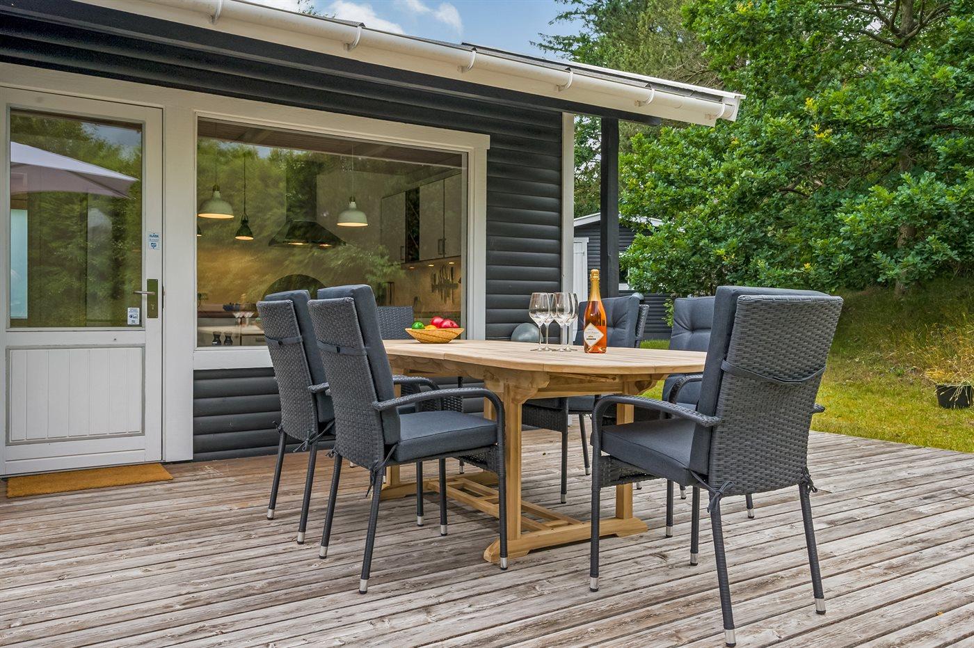Ferieboligen er beliggende på en 1200 m² stor havegrund. Der er 700 m til havet. Nærmeste forretning er beliggende i en afstand af 2500 m. Til ferieboligen hører 100 m² terrasseareal. Gynge. Parkering ved ferieboligen.