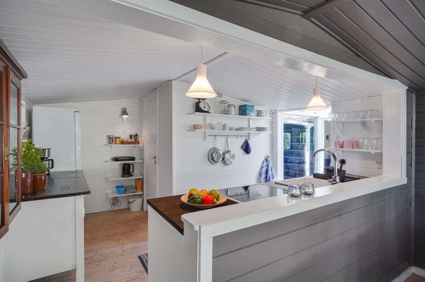 Dette autentiske sommerhus er indbegrebet af et Hornbæk-sommerhus med den sortmalede facade og de hvide sprossevinduer. Huset er charmerende og emmer af hygge og atmosfære. Fra den hyggelige stue med loft til kip er der udgang til terrassen, ligesom der er adgang til et soveværelse. Køkkenet og spisepladsen er i åben forbindelse, og også herfra er der udgang til terrassen. Sommerens gode vejr kan nydes på den hyggelige terrasse med kig til den dejlige have. Huset er beliggende i gåafstand til alt, hvad Hornbæk har at byde på. Blandt andet den gode og børnevenlige badestrand med klitter, lystbådehavnen samt byens hyggelige cafeer, restauranter og butikker. Desuden er der rig mulighed for at besøge de omkringliggende feriebyer som Gilleleje, Dronningmølle og Tisvildeleje eller besøge Helsingør og Kronborg Slot.