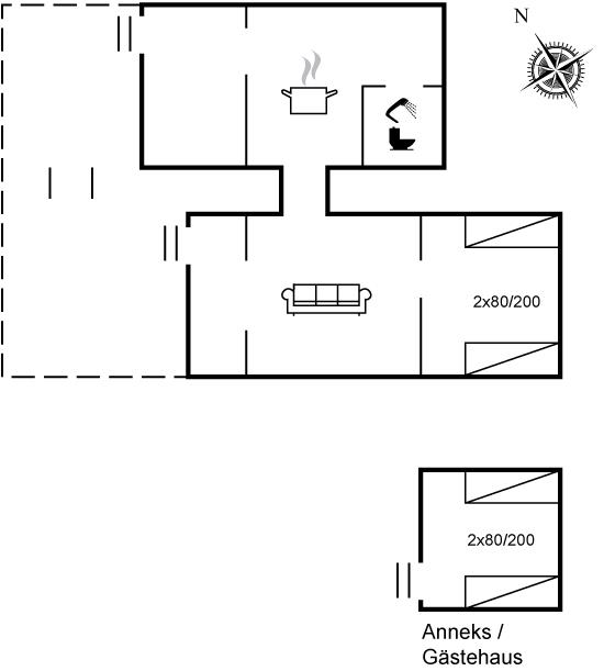 Der er i alt 2 soveværelser. Sovepladserne fordeler sig på: 4 sovepladser i enkeltsenge. 2 af disse sovepladser befinder sig i anneks. Derudover er der 1 stk. barneseng.