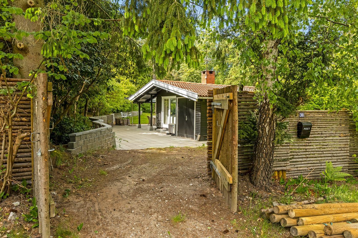 Ferieboligen er beliggende på en 989 m² stor havegrund. Grunden er indhegnet. Der er 660 m til havet. Nærmeste forretning er beliggende i en afstand af 1500 m. Til ferieboligen hører åbent terrasseareal. Desuden er der overdækket terrasse. Udendørs bruser. Der er mulighed for at tilberede maden udendørs i udekøkkenet. Grill til rådighed. Der er installeret stik til opladning af elbil. Type 2 stik. Med 11 kW ladeeffekt. Parkering ved ferieboligen.