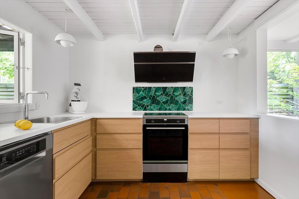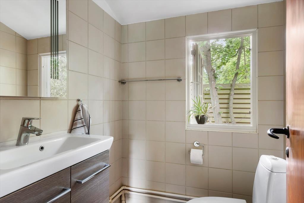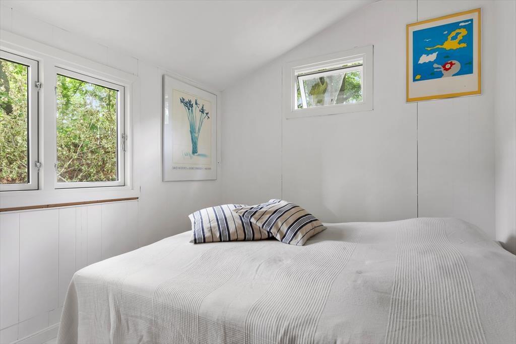 Det første, du møder, er en indretning, der stråler af sommerstemning og varme. Det åbne køkken og den lyse spisestue hænger naturligt sammen og skaber en indbydende ramme om både madlavning og måltider med familien. Store vinduespartier og udgang til terrassen trækker lyset helt ind i rummet, og brændeovnen bidrager med både varme og hyggelig stemning på kølige dage. Her kan du nyde morgenkaffen med udsigt til haven, mens flammerne knitrer sagte i baggrunden. Det første, du møder, er en indretning, der stråler af sommerstemning og varme. Det åbne køkken og den lyse spisestue hænger naturligt sammen og skaber en indbydende ramme om både madlavning og måltider med familien. Store vinduespartier og udgang til terrassen trækker lyset helt ind i rummet, og brændeovnen bidrager med både varme og hyggelig stemning på kølige dage. I forlængelse af spisestuen finder du opholdsstuen, hvor komfortable møbler indbyder til afslapning. Her kan du smide benene op i sofaen og fordybe dig i en god bog eller blot lade dagens oplevelser falde på plads i ro og fred. Soveværelserne er indrettet med tanke på både komfort og funktionalitet – det ene med dobbeltseng og barneseng, og det andet med dobbeltseng. Indretningen er enkel og hjemlig – præcis som et klassisk dansk sommerhus skal være.