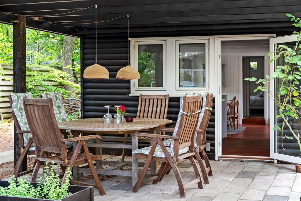 Når solen titter frem, kalder terrassen. Den overdækkede del giver mulighed for at nyde udelivet i al slags vejr, og herfra har du direkte adgang til haven. Slå dig ned med en bog og lyt til fuglesang og havets brusen i baggrunden – det er næsten terapi i sig selv. I haven er der god plads til afslapning eller leg, og spisepladen på terrassen indbyder til lange morgenmåltider under åben himmel. Du kan grille dagens fangst fra den lokale fiskehandler, eller bare læne dig tilbage i en liggestol med et glas kølig rosé og mærke feriepulsen falde.