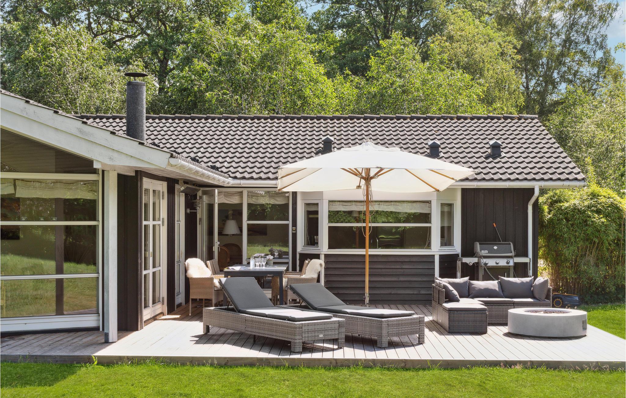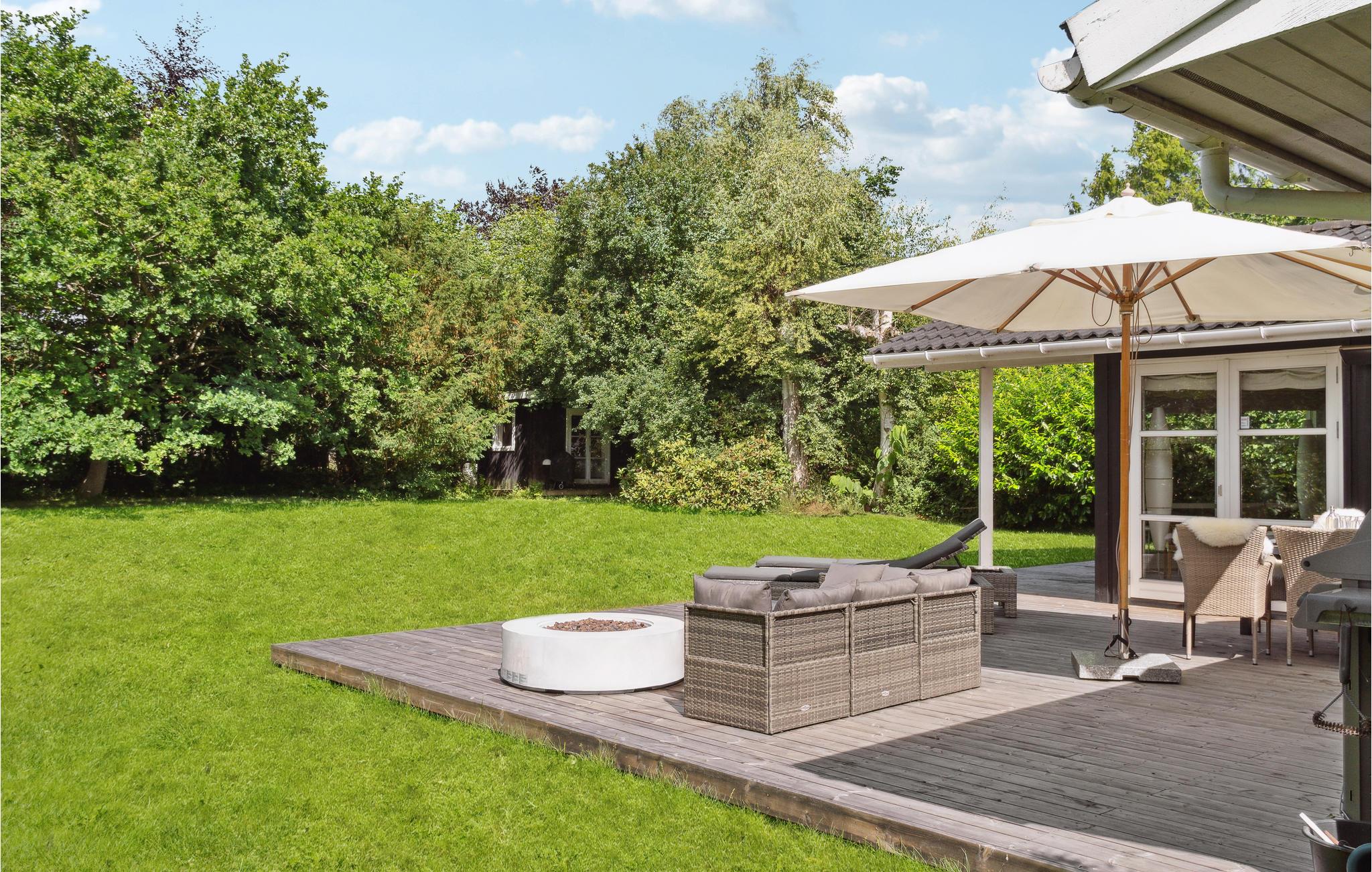 Elegant sommerhus nær Villingebæk Strand med terrasse, brændeovn og moderne faciliteter for en afslappende ferie.