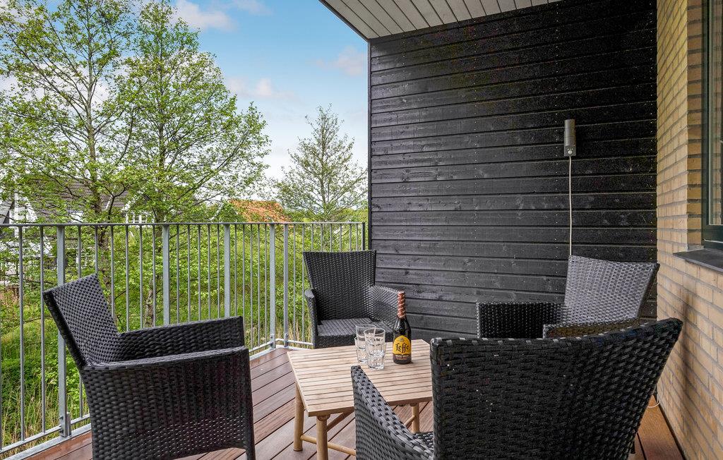 I Hornbæk Skovpark, med få kilometers afstand til hyggelige Hornbæk, ligger denne meget smagfuldt indrettede ferielejlighed på første sal. Lejligheden har dejlige altaner på begge sider af ejendommen - på den ene kan I nyde morgenkaffen og se solen stå op, mens modsatte side er klar til hyggelige aftener med lækkert mad og den smukke solnedgang. Fra begge sider af lejligheden er der et rigtig godt lysindfald, der gør at lejligheden er meget lys og indbydende. Det lækre, åbne køkken ligger i forbindelse med stuen, der er indrettet med flotte, klassiske møbler.