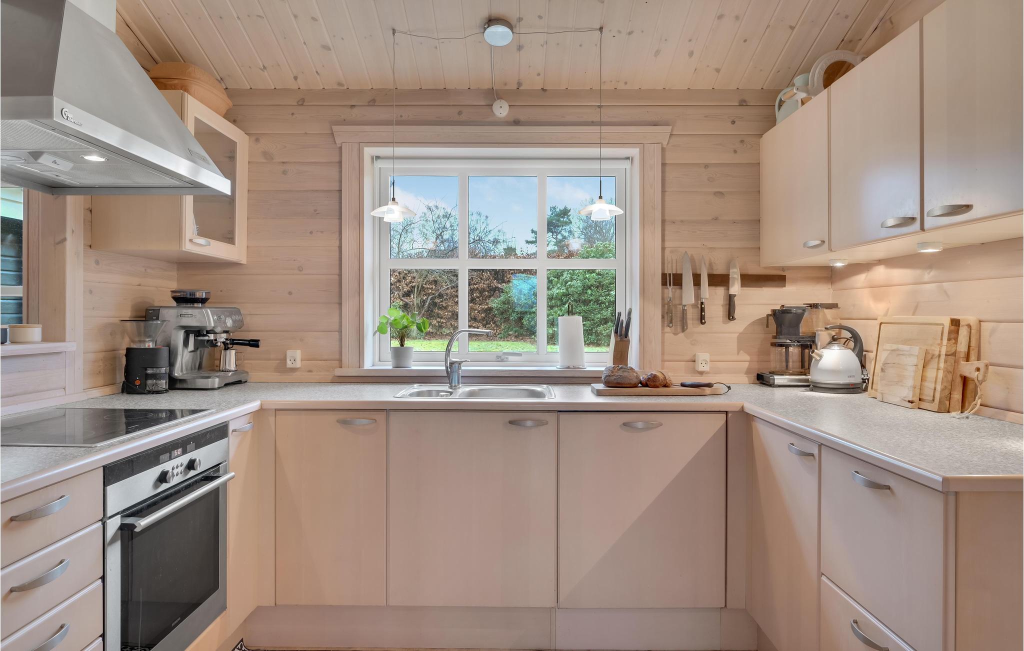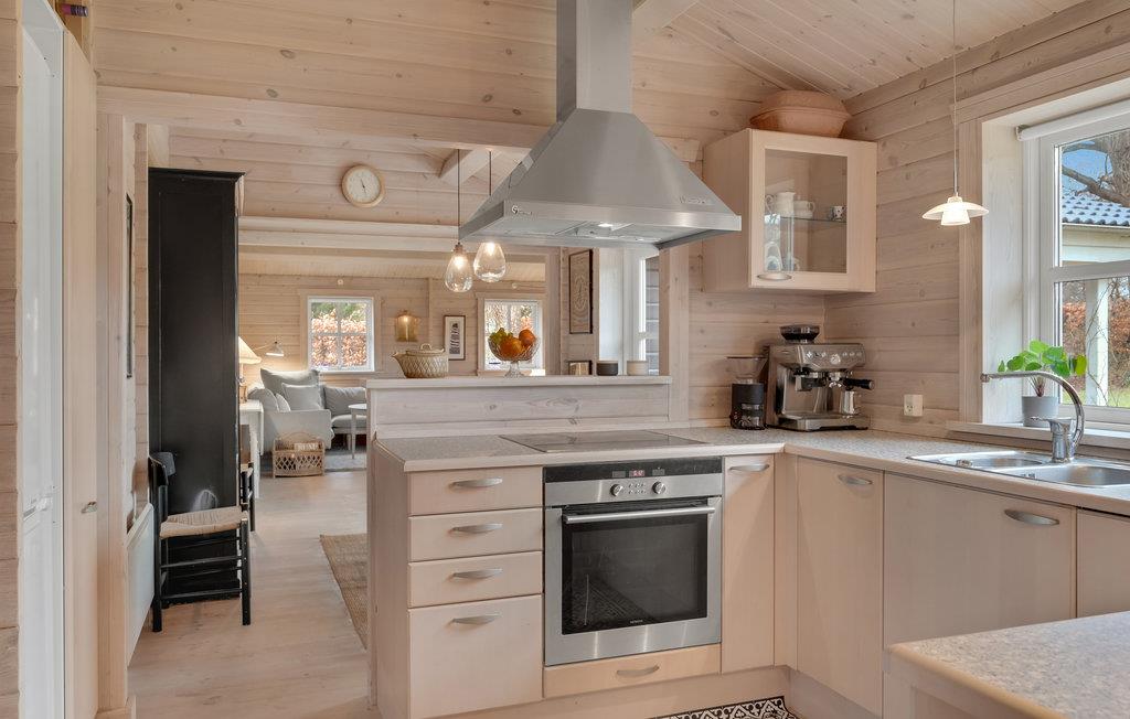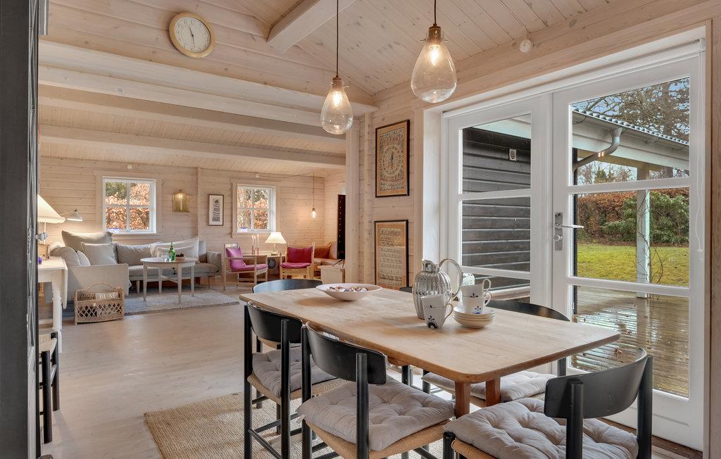 Det komfortable hus byder jer velkommen i en god beliggenhed i gåafstand til havet. Lad tankerne vandre i de lyse lokaler, der med den hjemlige indretning i klassisk sommerhusstil og indbydende farver danner den ideelle ramme om jeres afslapning. Den attraktive opholdsstue er indrettet, så I kan tilbringe hyggelige timer sammen, for eksempel mens I spiser sammen eller om aftenen i den behagelige sofa med flammerne knitrende i brændeovnen, med en god bog eller med samtaler til langt ud på aftenen. Sid ude på terrassen med en kop kaffe, nyd solen, roen og den smukke udsigt over ejendommen.