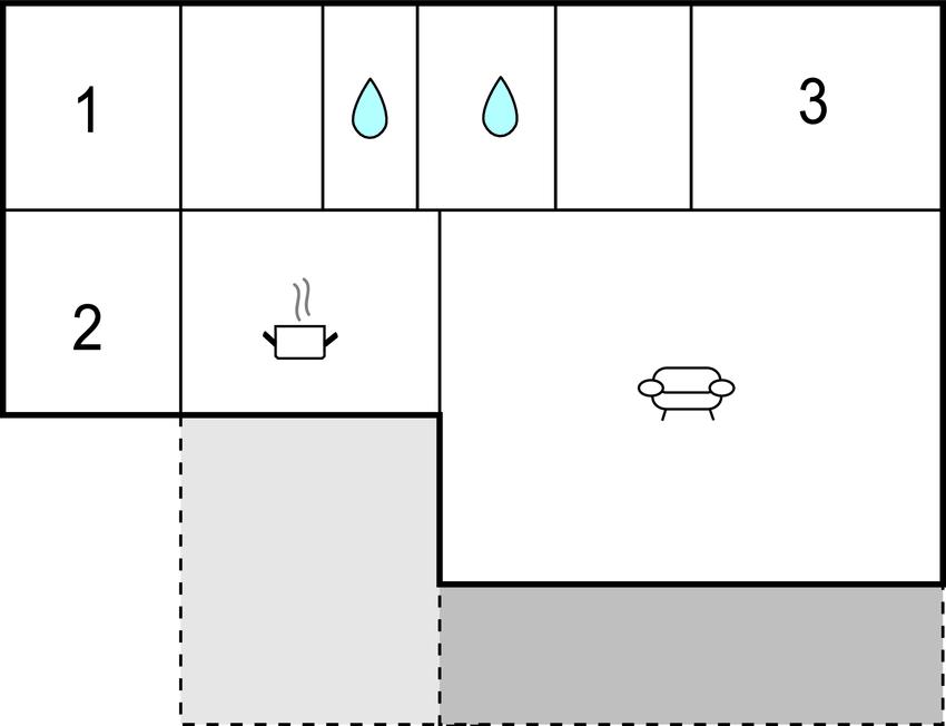 Køkkenet har v/k vand