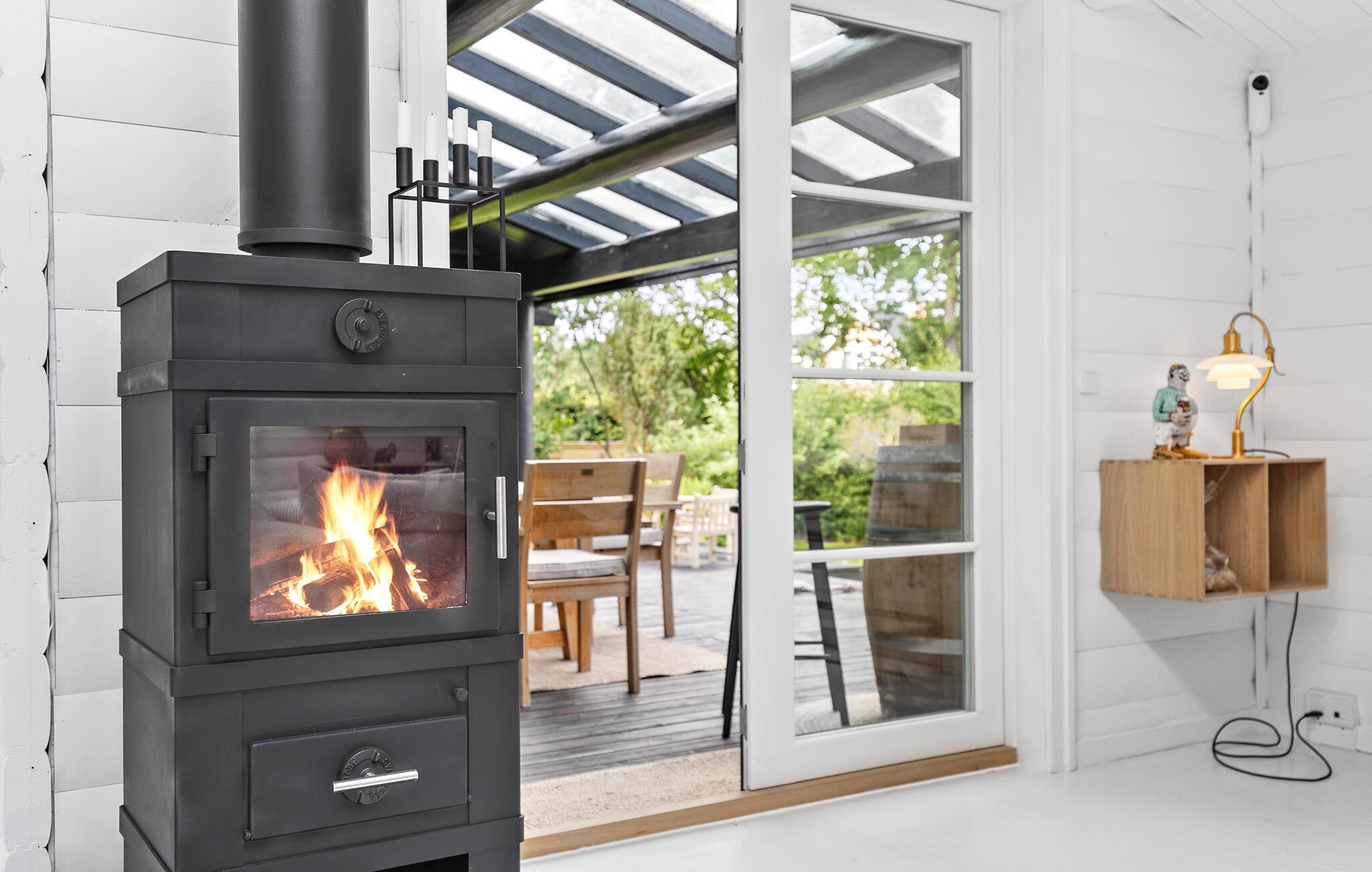 Dette komfortable feriehus kan prale af en åben og smagfuld opholdsstue, masser af naturligt dagslys og en smuk udsigt over de omkringliggende grønne områder. Skab kulinariske lækkerier og brug den hyggelige spiseplads til harmoniske måltider og sjove spilleaftener. Efter en lang dag i den friske havluft kan I samles i den behagelige sofa og streame en film, mens brændeovnen bader rummet i varmt lys.