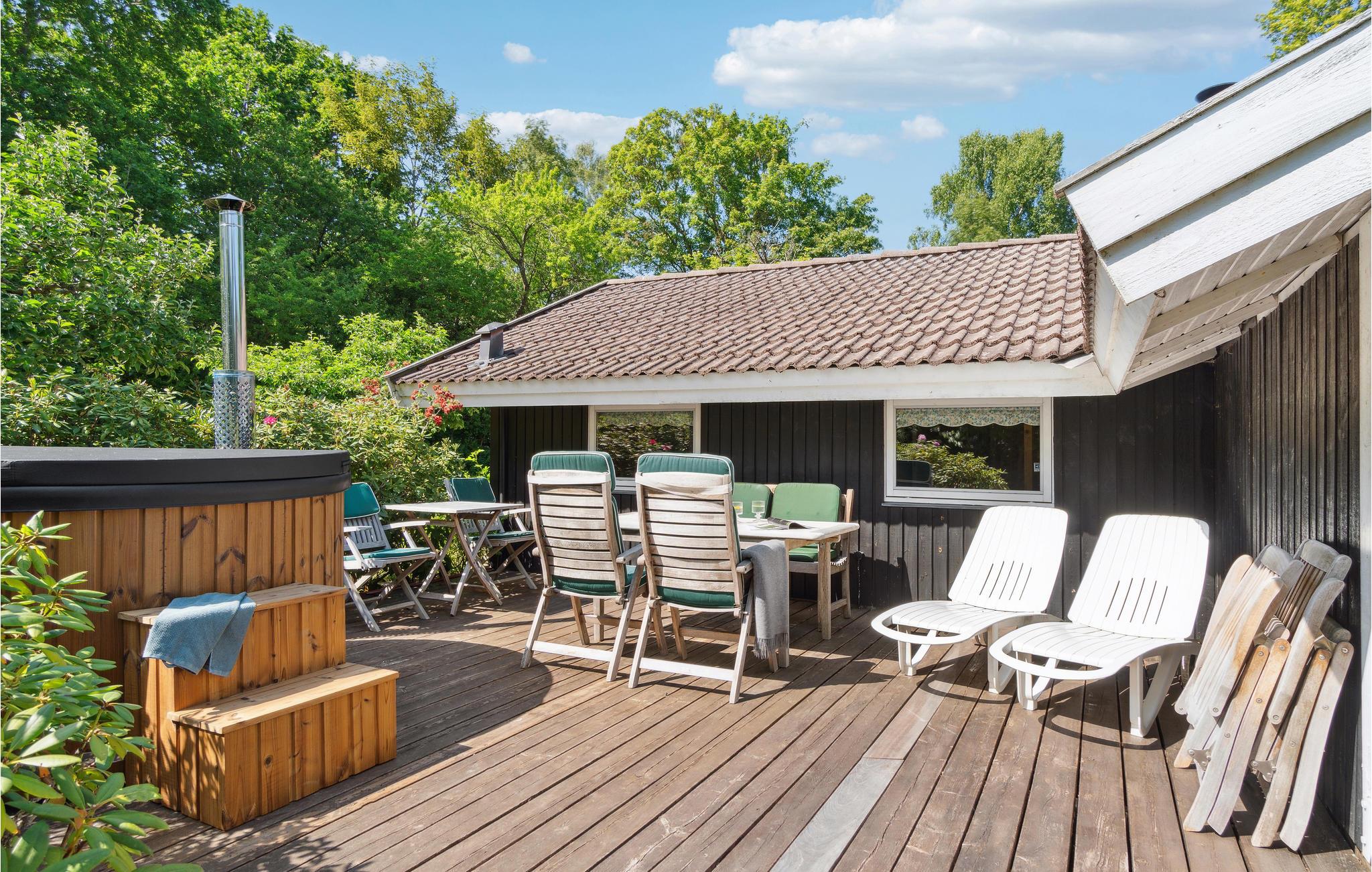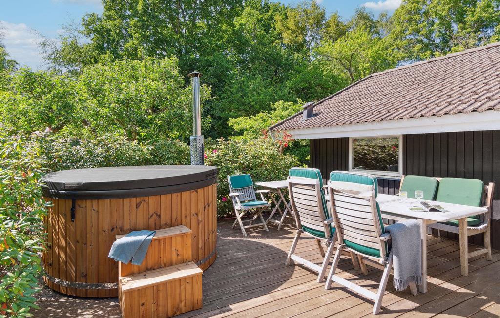 Tag med familien til Sjællands nordkyst og hold en afslappende ferie i dette hyggelige feriehus. De lyse trævægge og de høje, lyse lofter bidrager til en beroligende atmosfære, hvor I vil føle jer hjemme. Hyg jer med spil, læg et puslespil eller se en film i stuen. Her er der kun fokus på nærvær. Nyd en lækker frokost ved spisebordet, inden I tager til stranden. Lad jeres børn tumle i haven, mens I sætter kaffe, kage, saft eller måske lidt frisk frugt frem på terrassen. I kan også lege skovtur i den dejlige have med smukke rhodondendroner. Efter aftensmaden kan I hygge jer i vildmarksbadet.