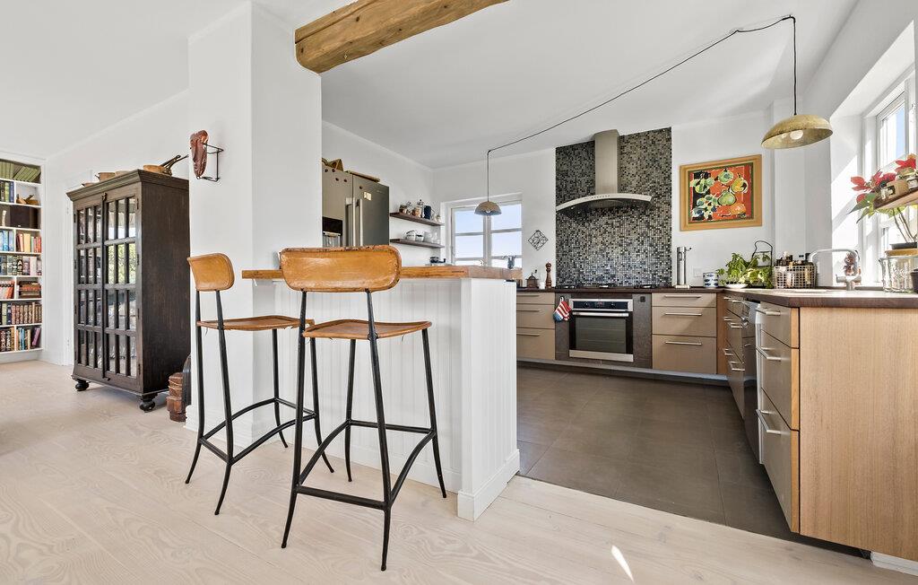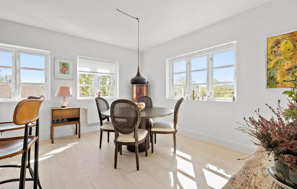 Tag familien under armen og rejs til Hornbæk, hvor I tæt på den hyggelige lystbådehavn får base i dette attraktive hus. Huset er virkelig flot indrettet over to etager med sans for detaljen, i lækre materialer og med et stort, veludstyret køkken, hvor familiens kokke kan kræse om livretterne. Nyd godt af de lækre lysindfald, de moderne faciliteter og det komfortable møblement, hvor I kan flade ud efter en dejlig feriedag og smide en god film på tv'et med lidt lækre snacks på siden.