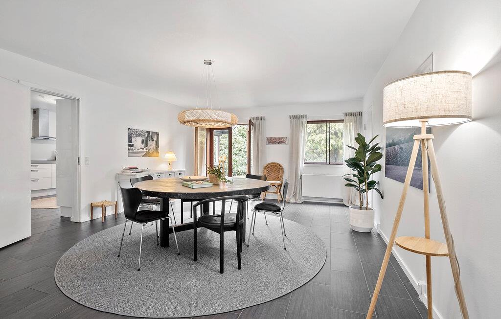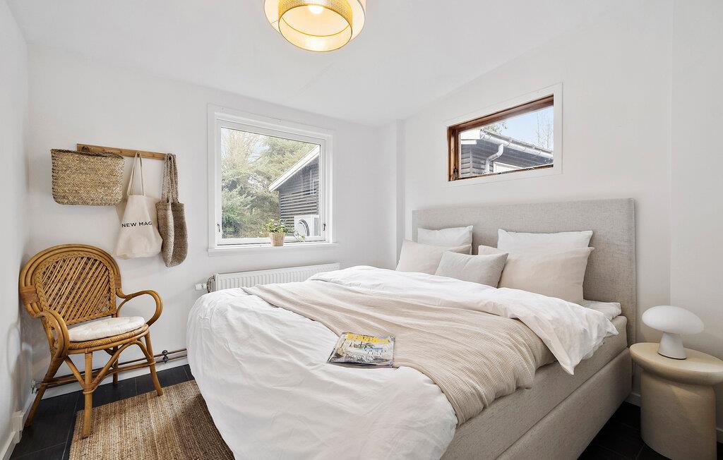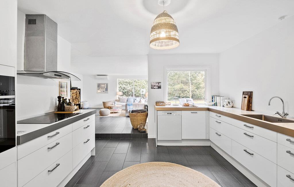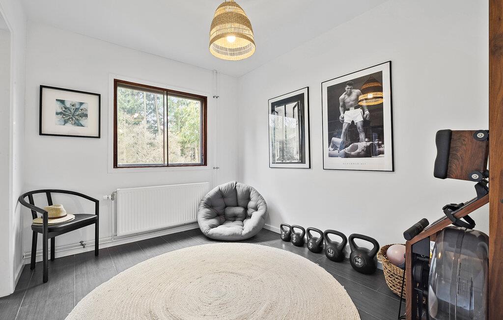 Tag familien under armen og lad turen gå til Hornbæk Strand, hvor der venter jer denne perle af en feriebolig. Huset er yderst rummeligt og byder på en virkelig flot og lys indretning. Med sit åbne boligkoncept, lækre lysindfald og møbler af høj kvalitet får I her en base, hvor I ikke kan undgå at slappe af og komme ned i tempo. Fra det åbne opholdsrum kan I nyde udsigten over grunden, mens I kræser om livretterne i køkkenet eller læser en god bog i sofaen. Når I har slået mad efter aftensmaden, kan I holde formen ved lige i fitnessområdet med romaskine, kettlebells, bokseudstyr og yogamåtte. I kan selvfølgelig også købe snacks ind til en hyggelig filmaften.