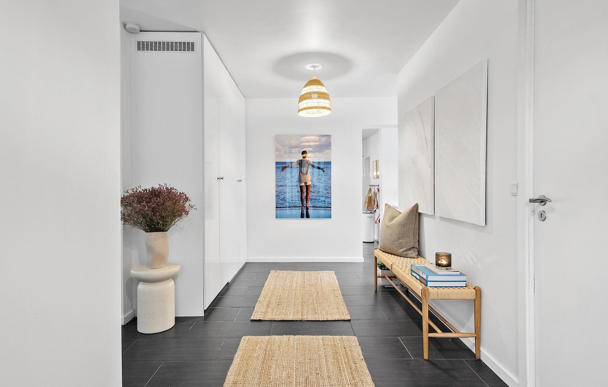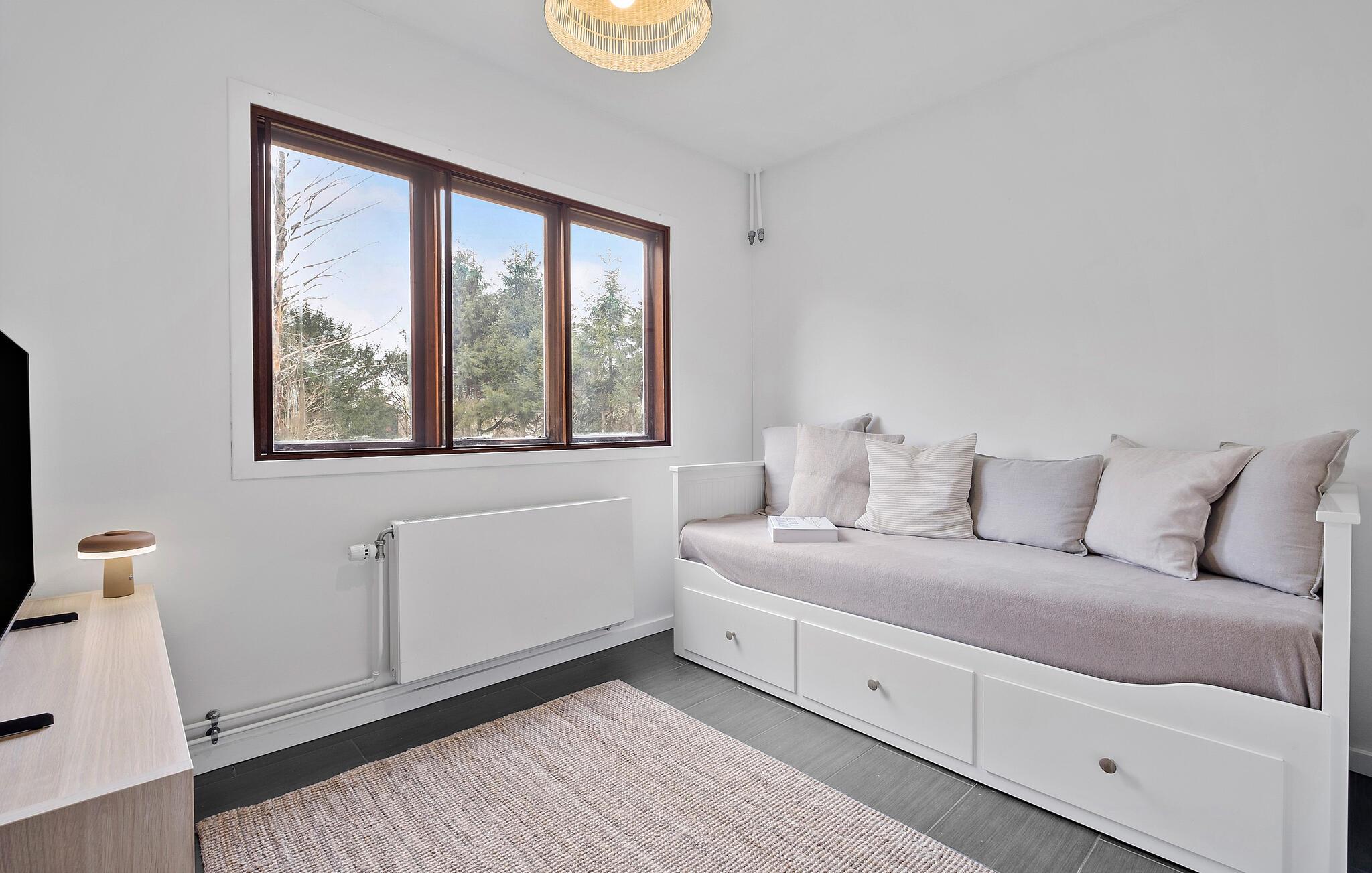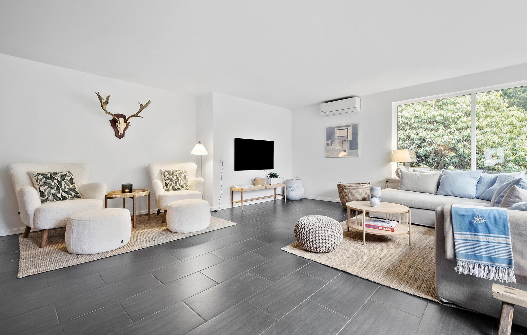 Tag familien under armen og lad turen gå til Hornbæk Strand, hvor der venter jer denne perle af en feriebolig. Huset er yderst rummeligt og byder på en virkelig flot og lys indretning. Med sit åbne boligkoncept, lækre lysindfald og møbler af høj kvalitet får I her en base, hvor I ikke kan undgå at slappe af og komme ned i tempo. Fra det åbne opholdsrum kan I nyde udsigten over grunden, mens I kræser om livretterne i køkkenet eller læser en god bog i sofaen. Når I har slået mad efter aftensmaden, kan I holde formen ved lige i fitnessområdet med romaskine, kettlebells, bokseudstyr og yogamåtte. I kan selvfølgelig også købe snacks ind til en hyggelig filmaften.