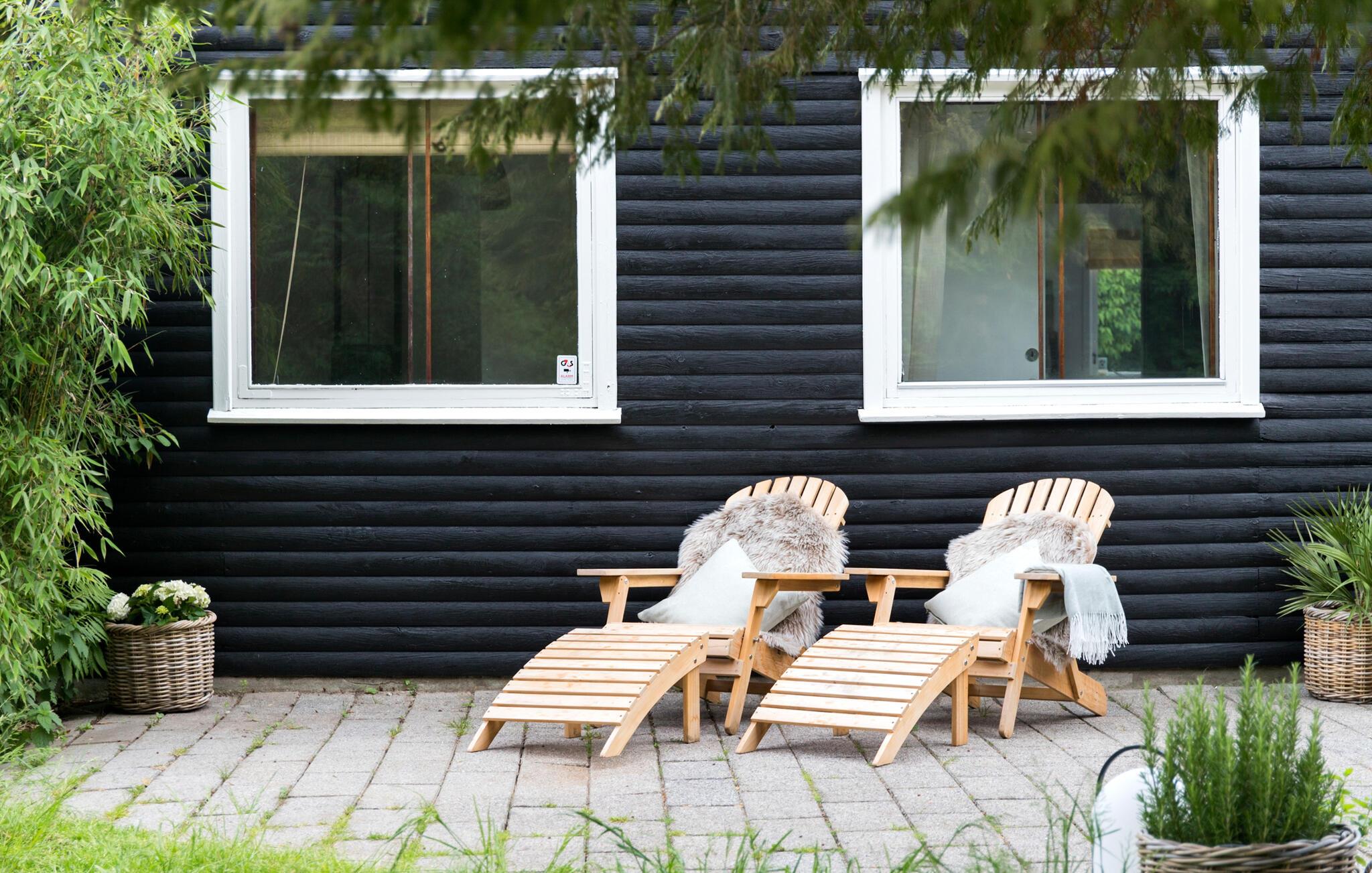 Nyd en luksuriøs ferie i et veludstyret og rummeligt træhus nær Hornbæk Strand med fitness og stor terrasse.