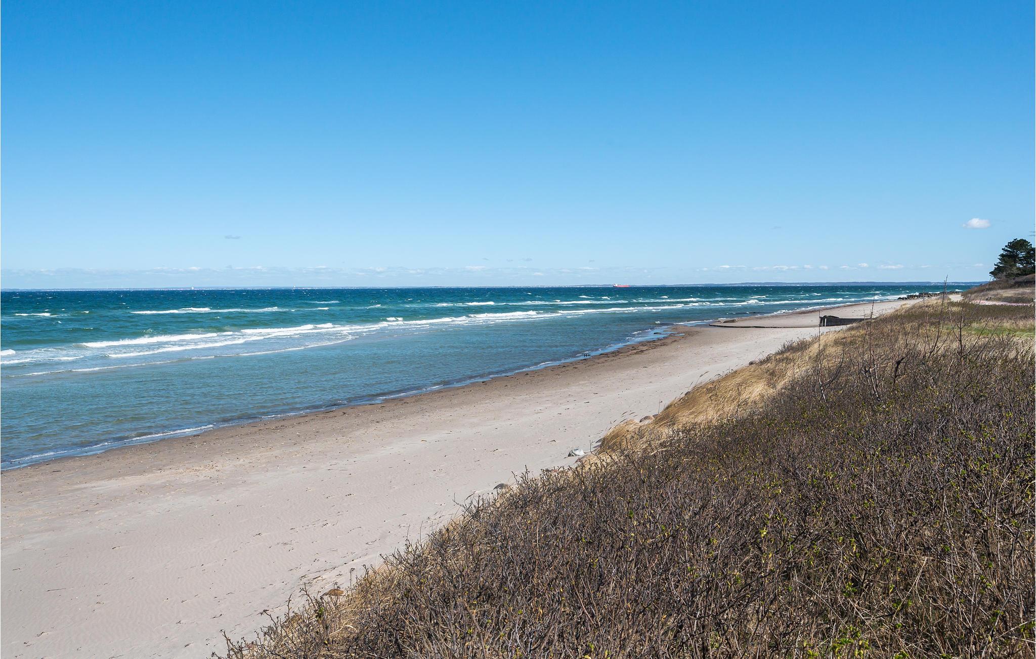 Feriehuset er lyst og venligt, og er indrettet med et stort vinduesparti i stuen, så fornemmelsen inde i huset er, at det går i et med naturen. Stuen er sammenhængende med køkkenet, hvorfra der er adgang til terrassen, der går hele vejen rundt om huset. Bag huset kan I sidde i læ, og her grænser huset op til et fredet område. Efter en tur på stranden, hvor I har nydt solen og måske været en tur i bølgen blå, derefter kan man nyde en sfslappet stund på terrassen . Medbring cykler og cykl en tur til Hornbæk med den hyggelige lystbådehavn, små butikker og caféer.