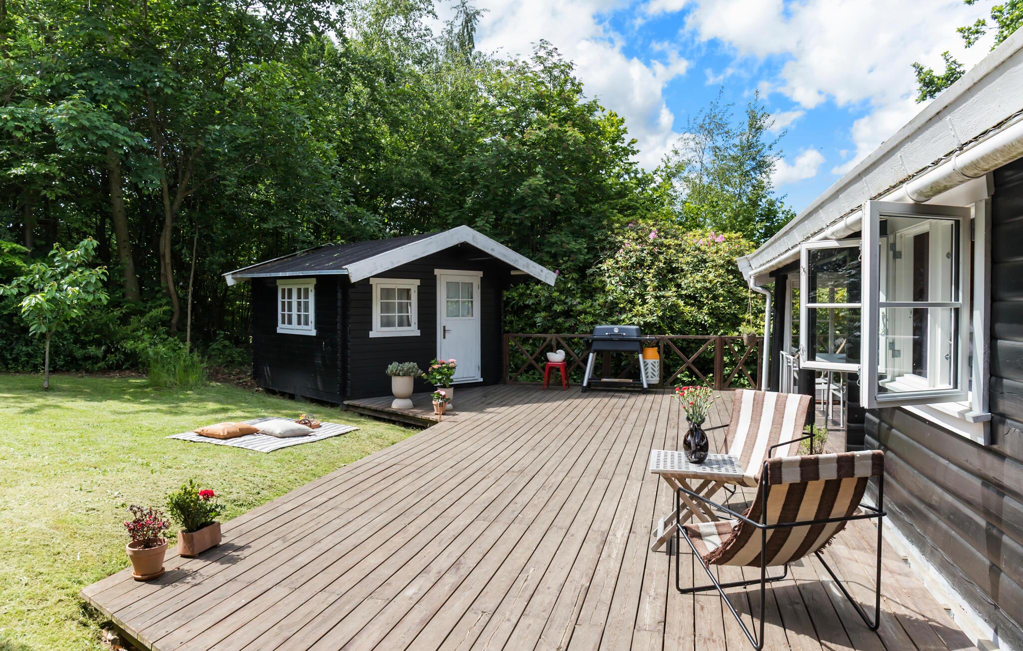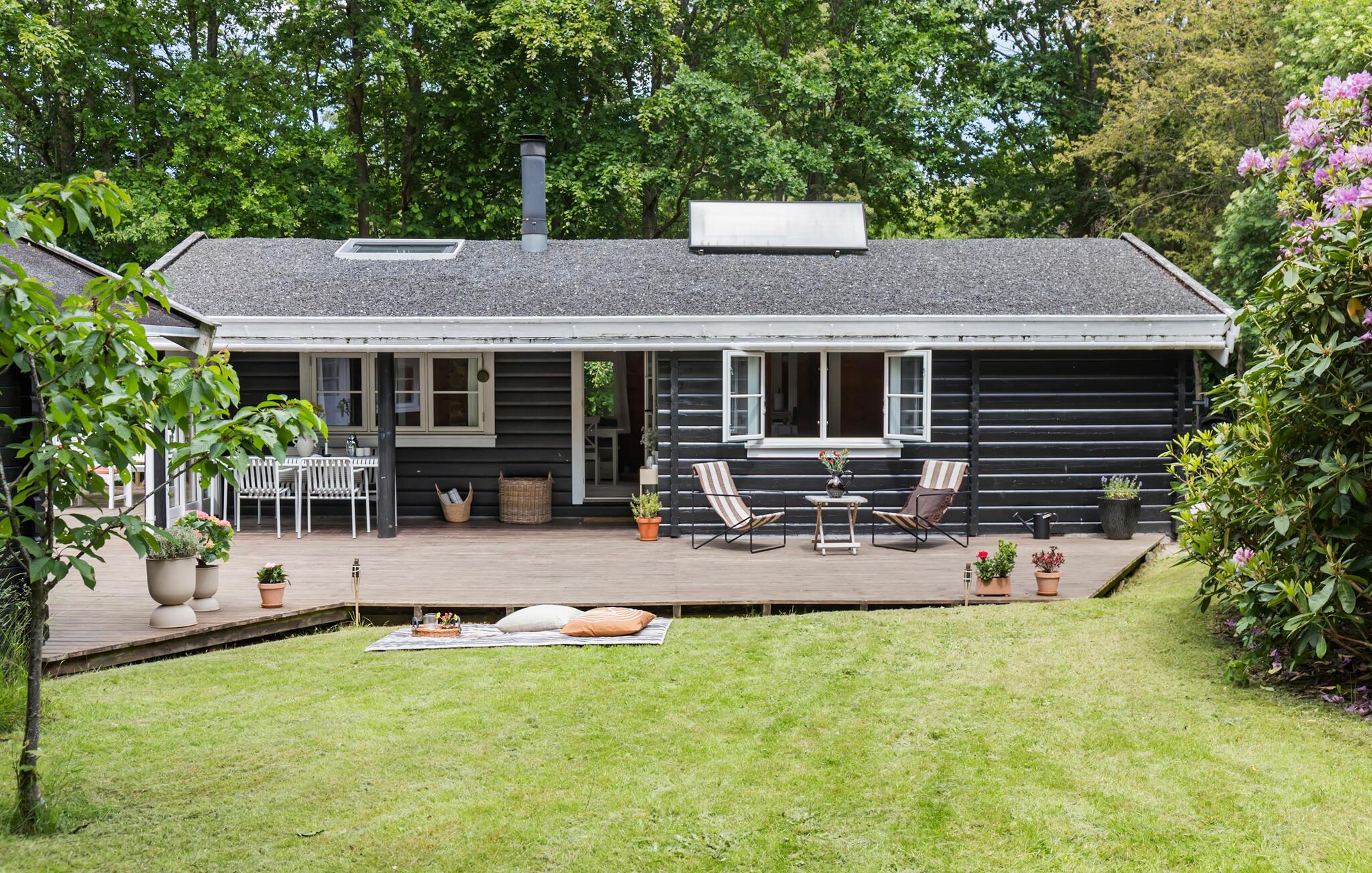 Charmerende sommerhus i Hornbæk med brændeovn, terrasse og nærhed til strand og skov, perfekt til afslapning og naturoplevelser.