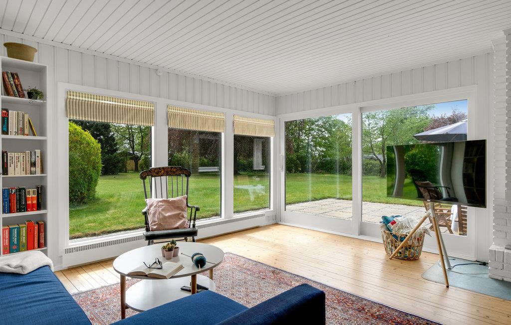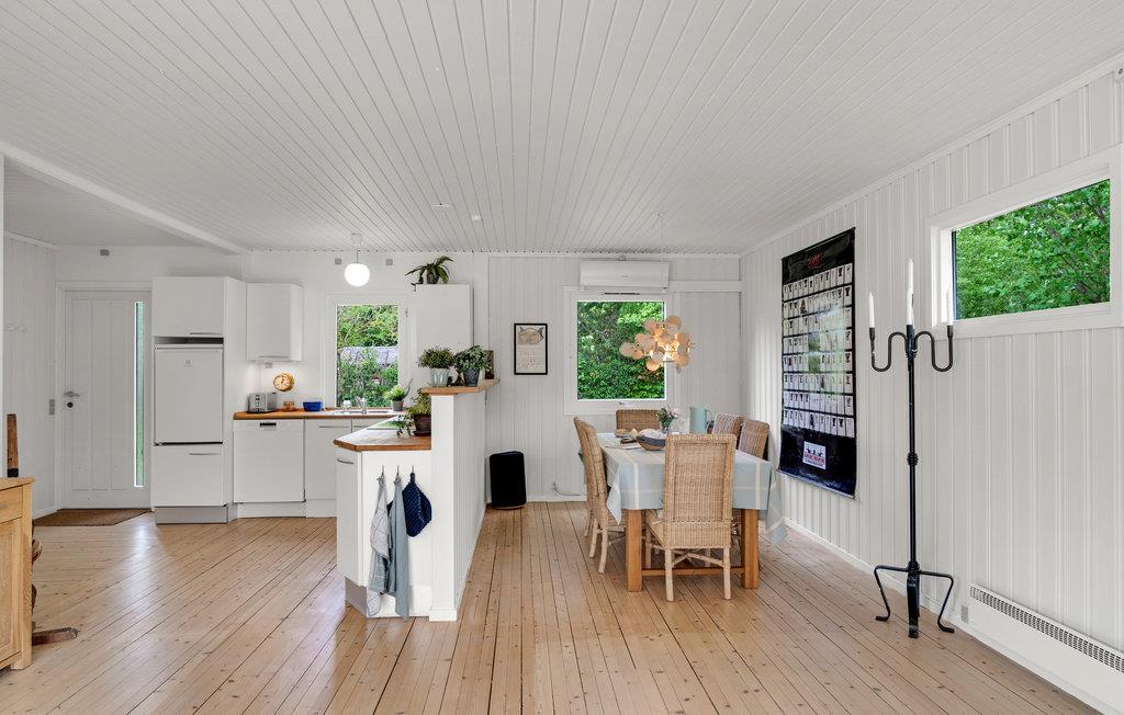 Tag en pause fra den hektiske hverdag, og tag til dette feriehus i Stenstrup ikke langt fra Hornbæk. Kombinationen af hvid og lyst træ, den åbne planløsning og ikke mindst de store vinduer giver en følelse af lys, rummelighed og lethed. I den lyse og rummelige opholdsstue kan I lave mad og spise sammen, slappe af foran pejsen og se en god film i fjernsynet. Eller slå jer ned på gulvet eller ved spisebordet sammen med børnene, og tilbring hyggelige timer med spil og samvær.