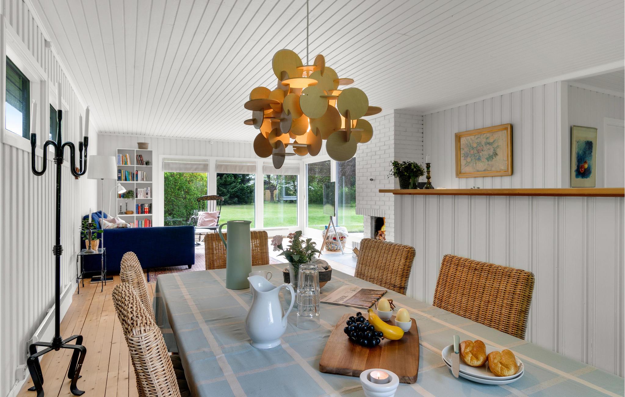 Fra stuen kan I træde ud på solterrassen og nyde solens stråler på græsplænen eller ved grillen og spisepladsen på terrassen. Brug tiden til at planlægge jeres aktiviteter for de kommende feriedage.