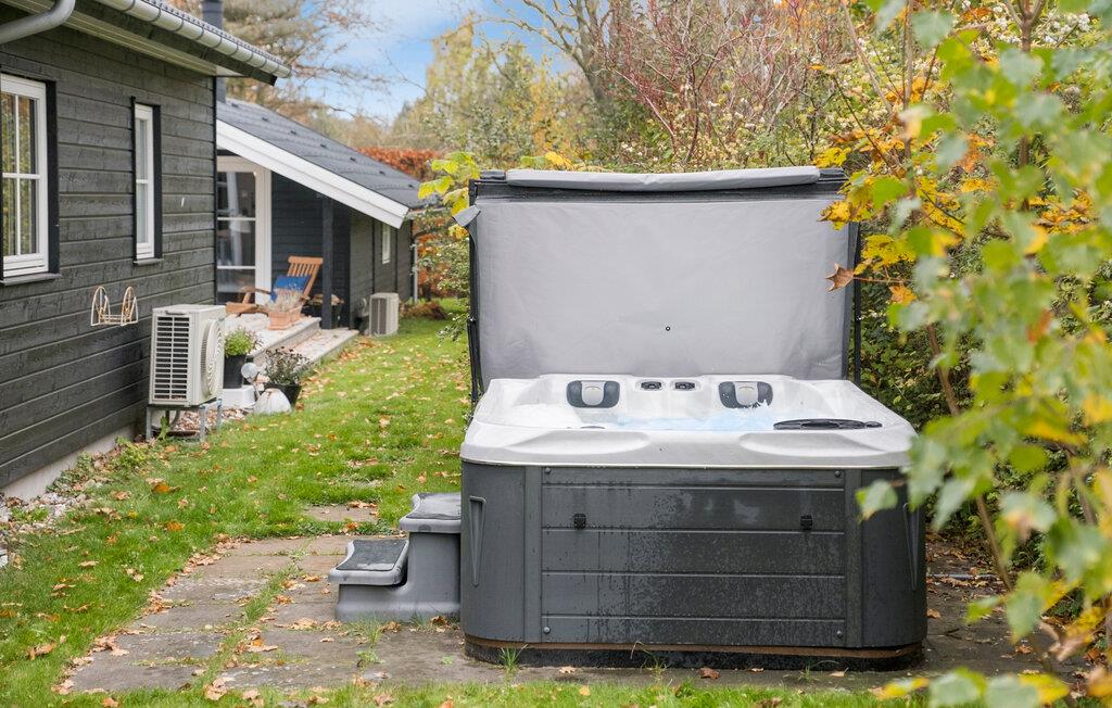 Charmerende feriehus ved Hornbæk Strand med spabad, stor have og moderne faciliteter for afslapning og familiehygge.