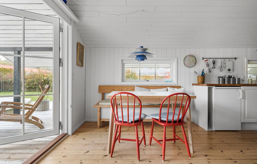 Jeres feriedomicil ved Hornbæk Strand, indlejret i den rolige natur på Nordsjællands kyst, er det ideelle tilflugtssted til at koble af og få ny energi. I det veludstyrede køkken kan I lave mad sammen som familie og prøve nye favoritretter. Ved spisebordet med udsigt til den smukke have kan I starte dagen afslappet og drøfte dagens udflugter. De hyggelige sofaer indbyder til afslapning. Her kan I hygge jer med en god bog eller en film og nyde samværet med jeres kære, mens ilden knitrer i brændeovnen.
