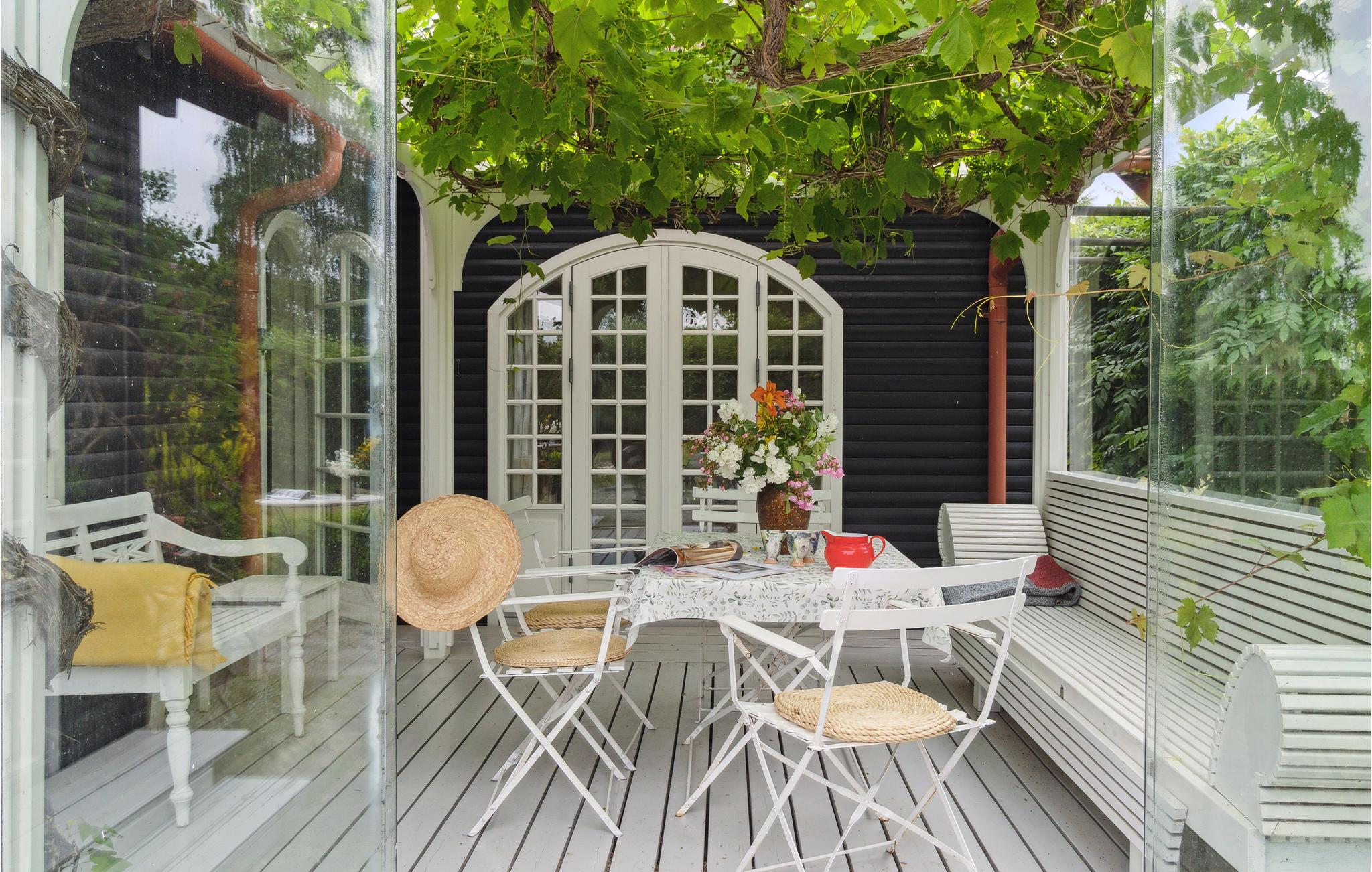Dette smukke træhus med en helt særlig glaspavillon i haven byder velkommen til Den Danske Riviera.