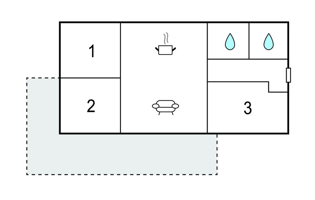 Badeværelse 3m2 (nr. 2) - WC. Varmt og koldt vand. Bruser