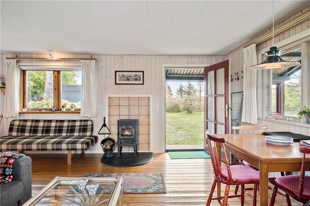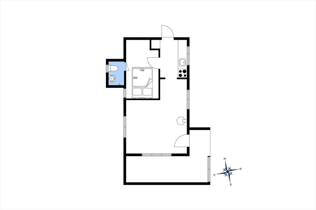Huset er forholdsvis lille med et større, sammenhængende rum bestående af køkken/spiseplads/stue, et godt soveværelse med dobbeltseng og et pænt badeværelse med bruser. Køkkenet har de mest nødvendige hjælpemidler, og i stuen kan man skrue ekstra op for hyggen med ild i brændeovnen. Der findes desuden 2 gode sovepladser i annekset.