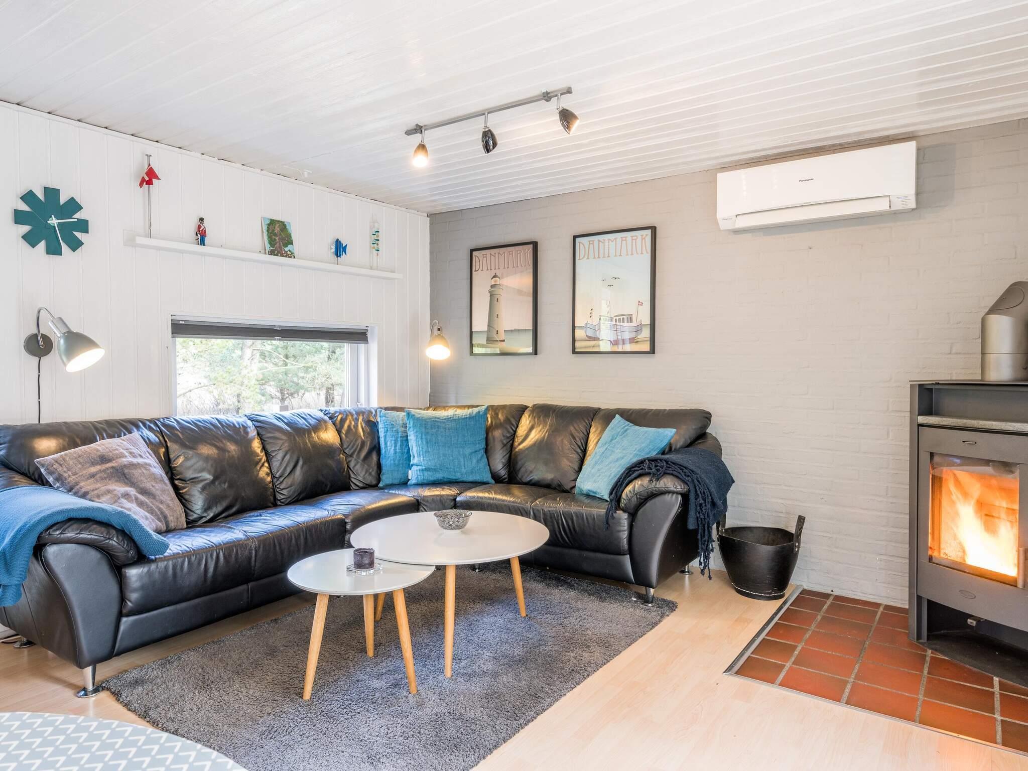 1 Opholdsstue: Brændeovn, radio, dvd-afspiller, Chromecast, parabol, barneseng og høj stol