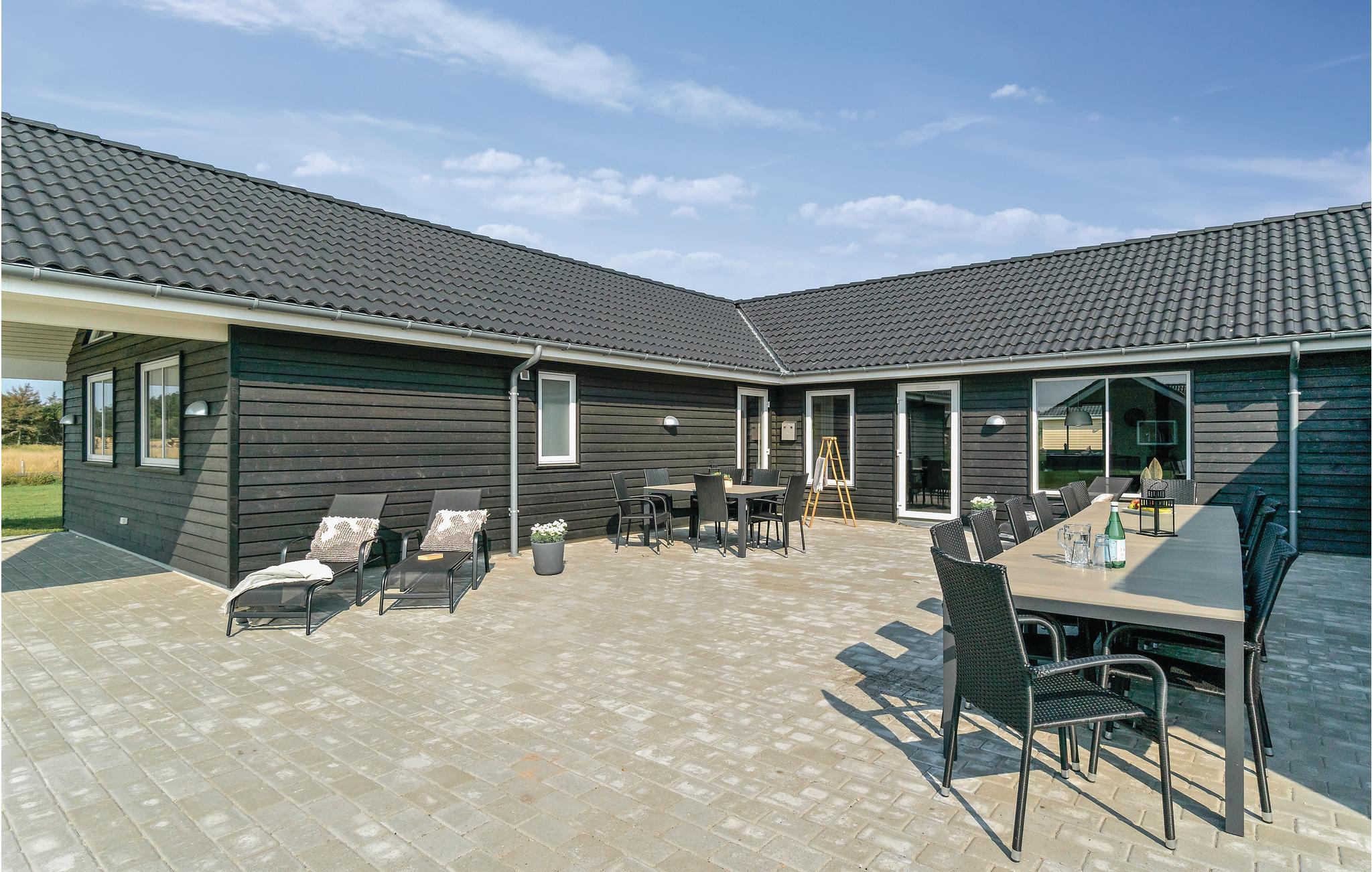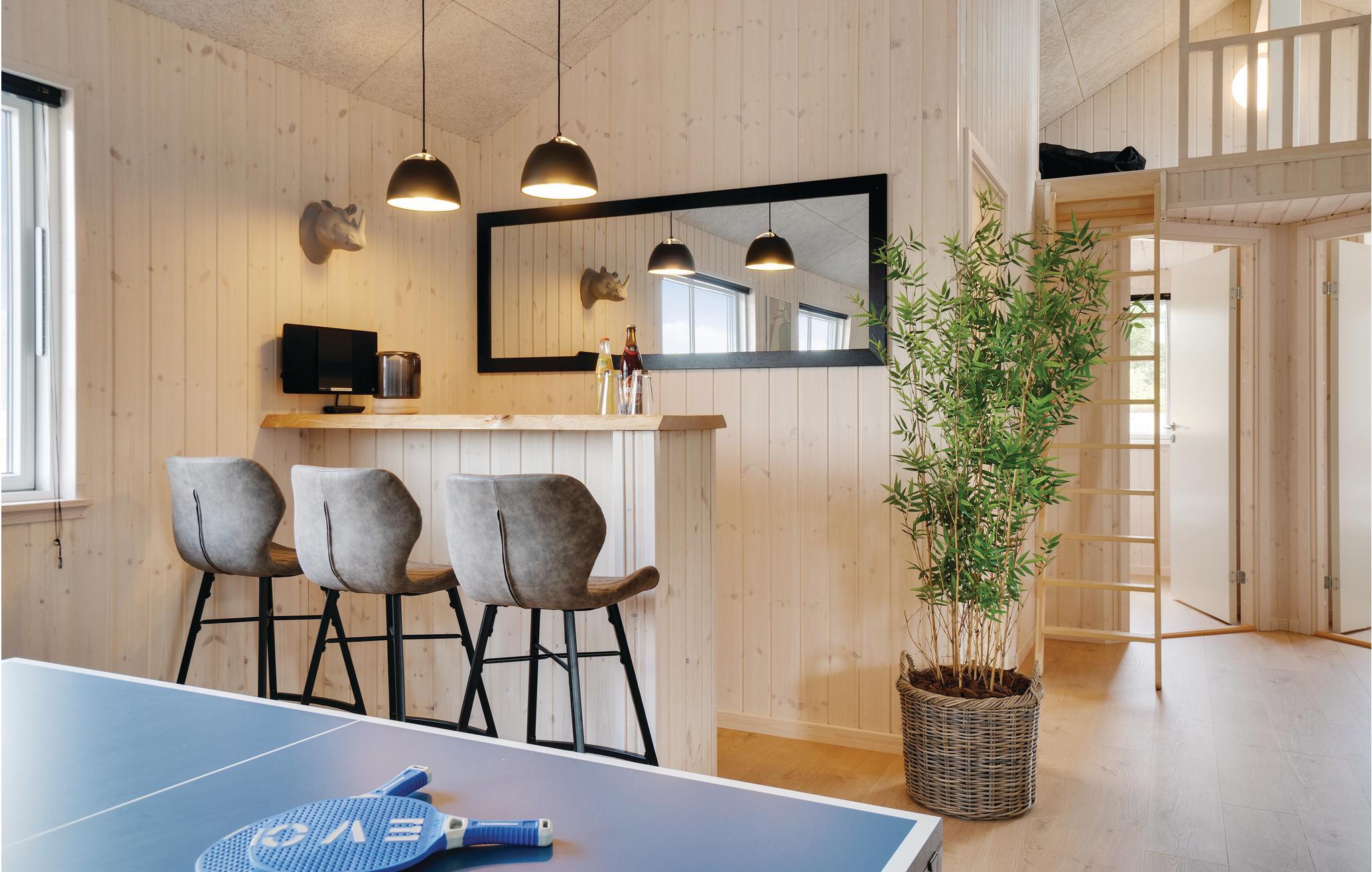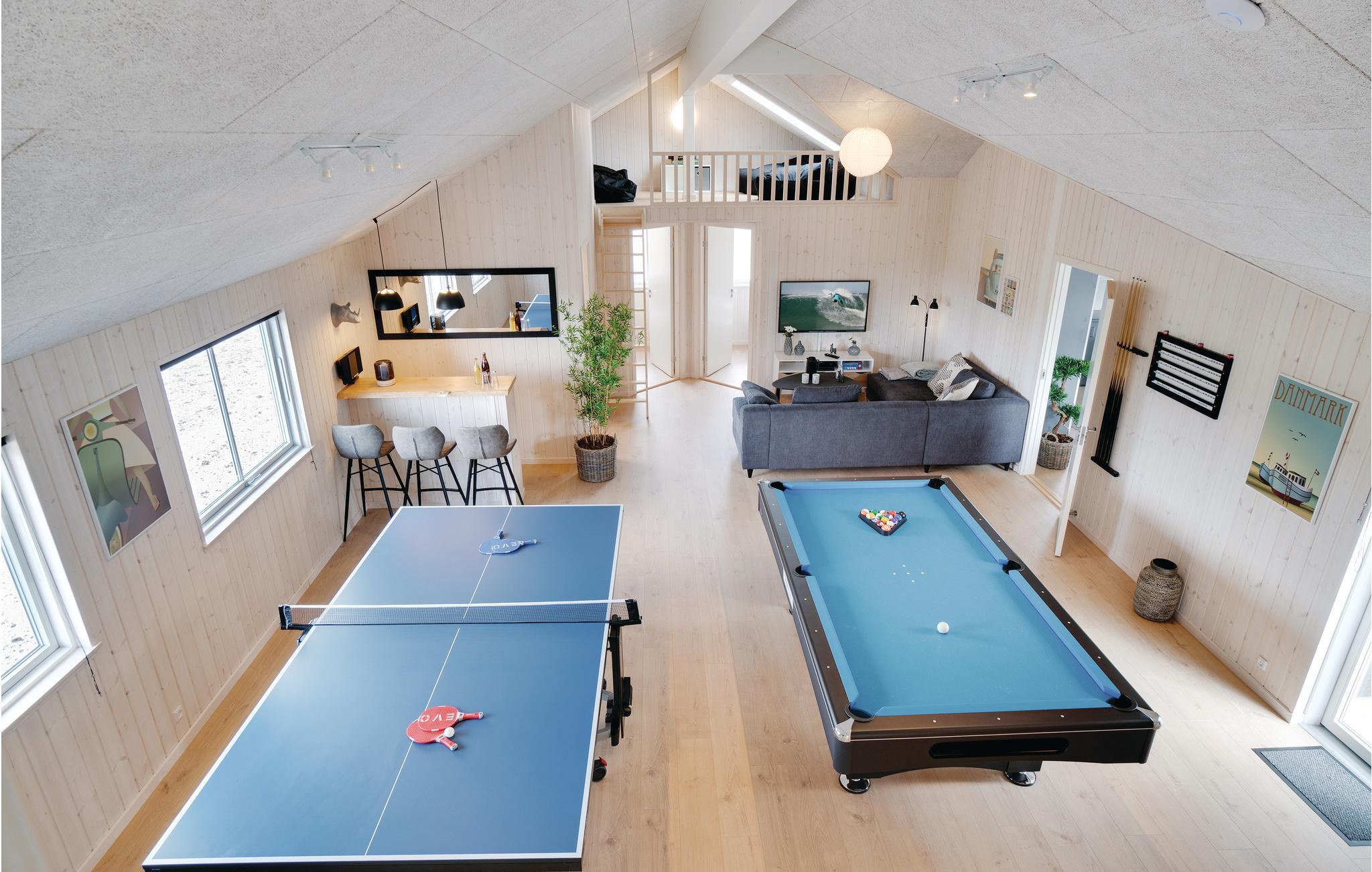 Dette luksuriøse og meget rummelige swimmingpool sommerhus er opført midt i det skønne sommerhusområde ved Houstrup. Her har I mulighed for en gennemført ferieoplevelse, uanset om I er til afslapning eller til aktiviteter. I husets eget badeland kan I nyde godt af den store pool med vandrutsjebane, modstrømsanlæg, stort spabad med plads til 4-6 personer og sauna. Er I til aktiv ferie, så har sommerhuset rigeligt at byde på, hvad angår indendørs aktiviteter. Aktivitetsrummet indeholder både billard, bordtennis og fodboldspil samt et hyggeligt sofahjørne med fladskærm og Playstation4. Trådløst internet i huset er en selvfølge. Det flotte, yderst rummelige køkken har direkte forbindelse til stuen samt rummet hvor baren findes. Køkkenet rummer alle ønskværdige faciliteter, deriblandt to komfurer samt to køleskabe så der let kan laves og opbevares mad til alle.