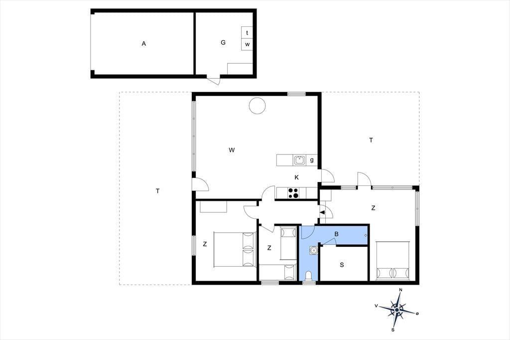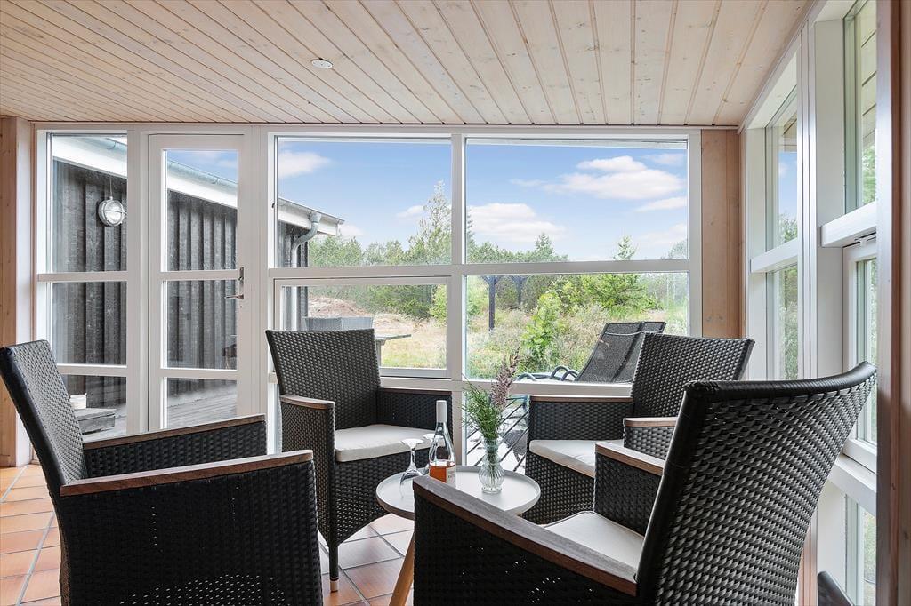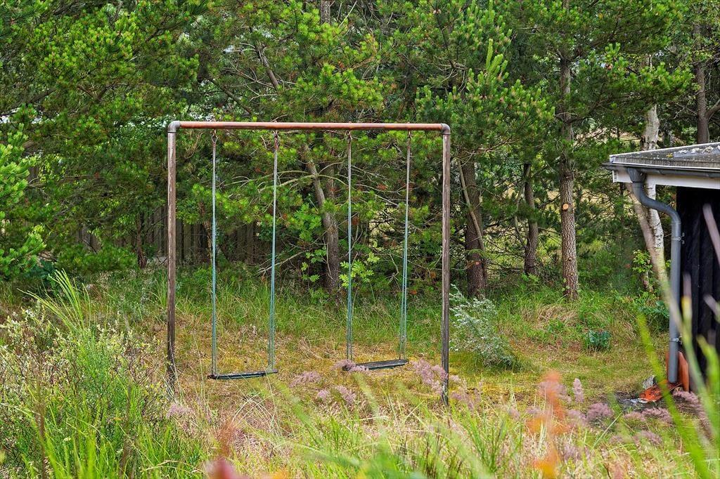 Fra køkkenet og det ene soveværelse har du direkte adgang til en nordvestvendt terrasse, og stuens havedør giver adgang til en endnu en terrasse mod syd. Med andre ord skal du nok få alt det bedste ud af feriens solskinstimer – uanset om du vil slænge dig i en liggestol, fordybe dig i din medbragte krimi eller forkæle familien med aftensmad tilberedt på grillen. Grunden er imponerende stor og meget naturskøn, og der er et gyngestativ til rådighed, hvis de yngste feriegæster skulle få lyst til en gyngetur.