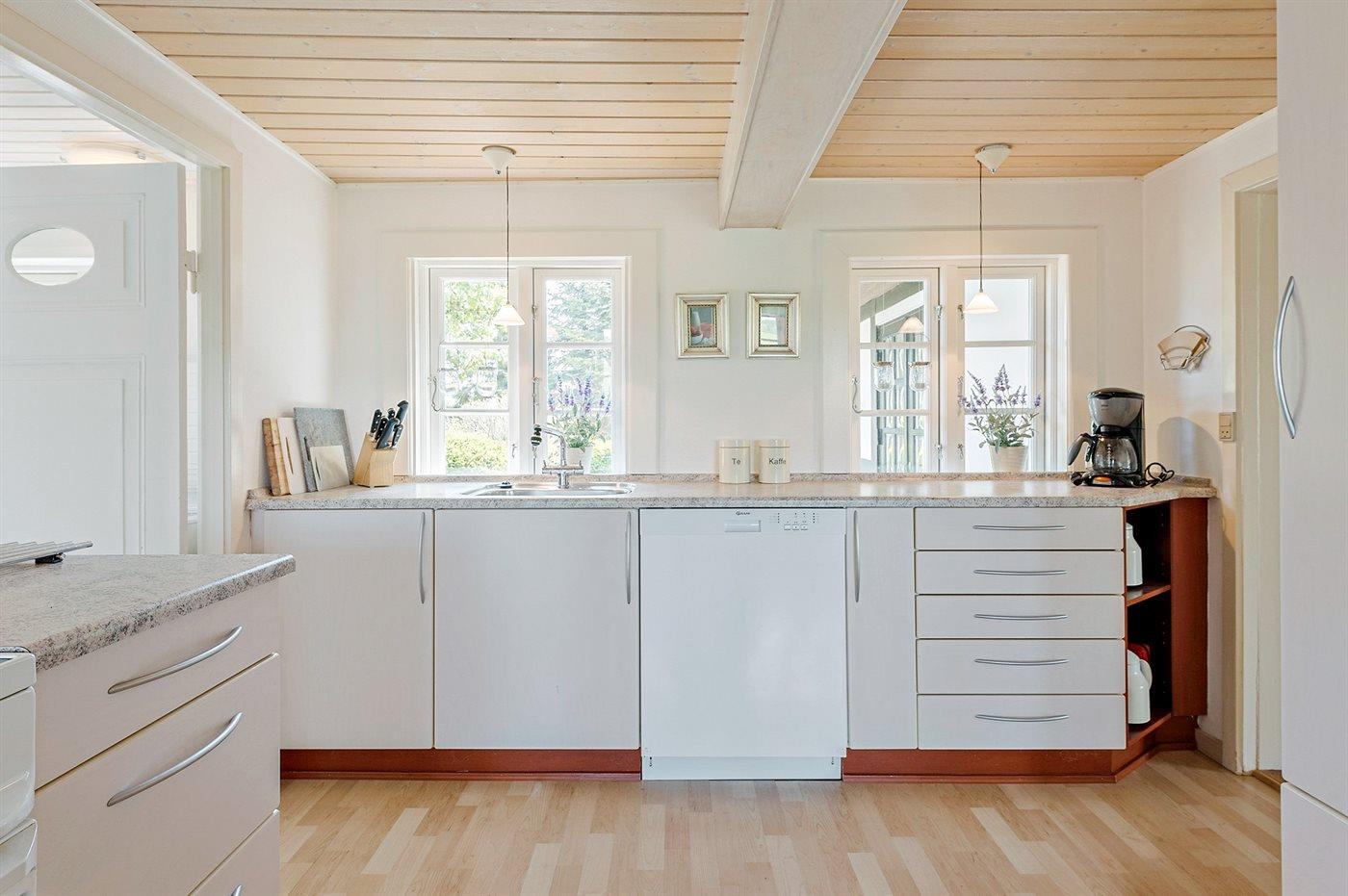 Køkkenet er udstyret med 1 køleskab. Der er 4 keramiske kogeplader, varmluftovn, mikrobølgeovn samt opvaskemaskine.