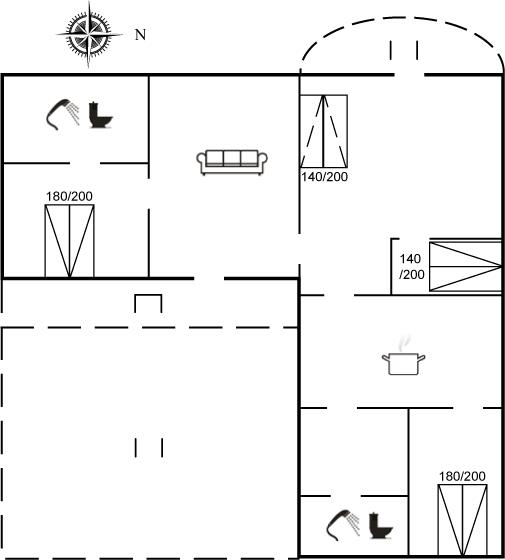 Der er i alt 3 soveværelser. Sovepladserne fordeler sig på: 6 sovepladser i dobbeltsenge. 1 soveplads i sovesofa (enkelt). Derudover er der 1 stk. barneseng.