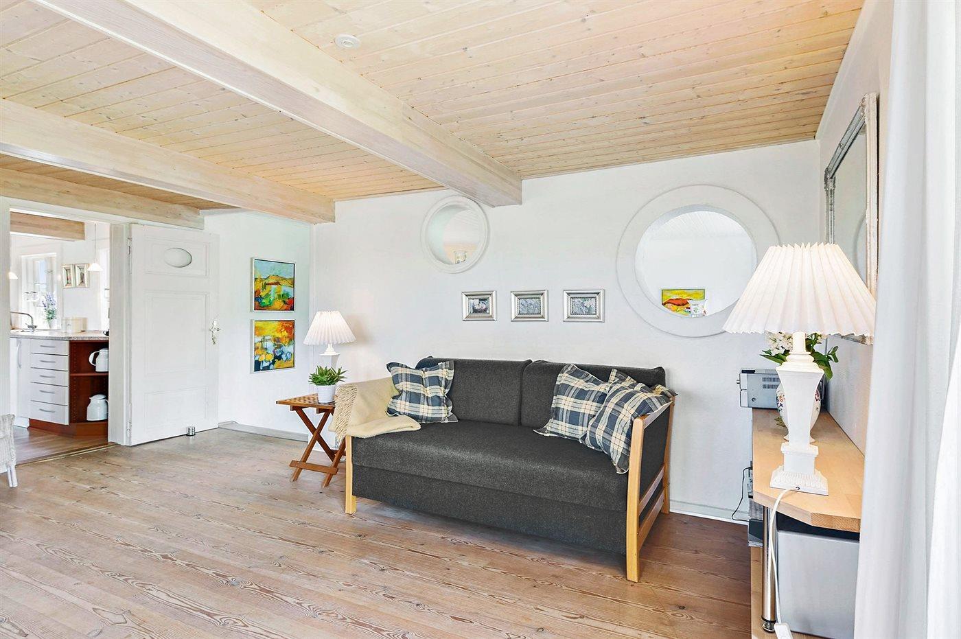 Bindingsværkshus med stråtag beliggende på landet. Til huset hører en dejlig havegrund med havepavillon. Det ene badeværelse har badekar. Huset er indrettet med 2 stuer. Huset ligger 1 km fra en golfbane, og i området er der gode fiskemuligheder.