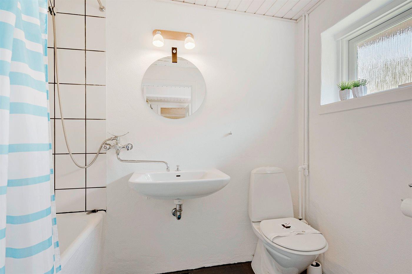 Der er 2 badeværelser med bruseniche og 2 toiletter, heraf 1 gæstetoilet. Der er gulvvarme på 1 badeværelse.. Badekar.