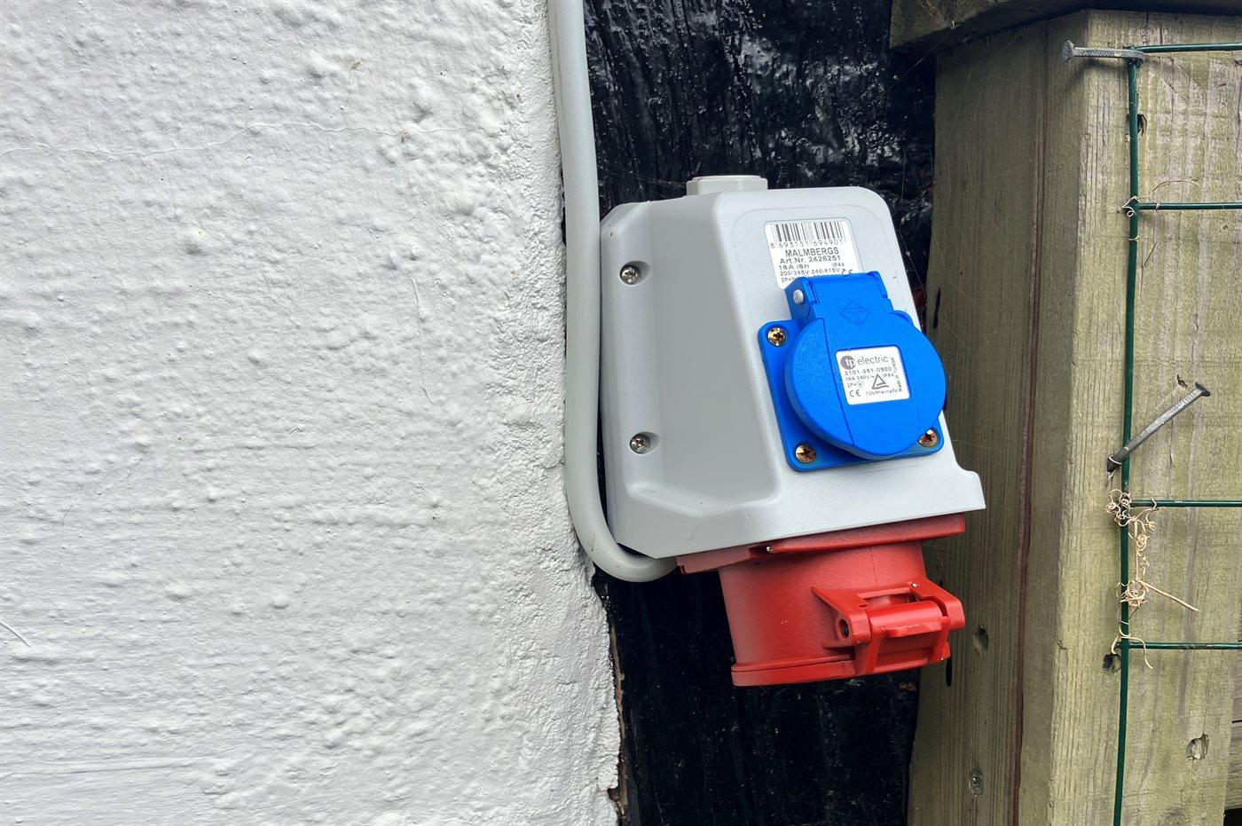 Ferieboligen er beliggende på en 2500 m² stor havegrund. Grunden er indhegnet. Der er 2000 m til havet. Nærmeste forretning er beliggende i en afstand af 2000 m. Der er en golfbane i en afstand af 1000 m. Til ferieboligen hører 40 m² terrasseareal. Desuden er der 25 m² overdækket terrasse. Der er redskabsrum. Sandkasse. Bålsted. Der er carport til rådighed. Der er installeret stik til opladning af elbil. CEE stik.