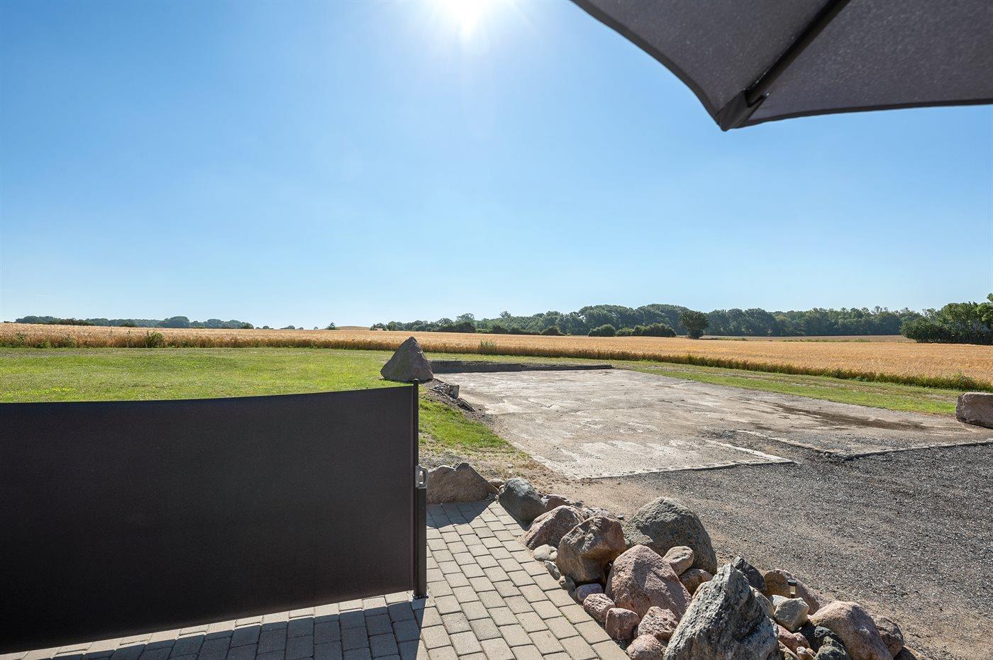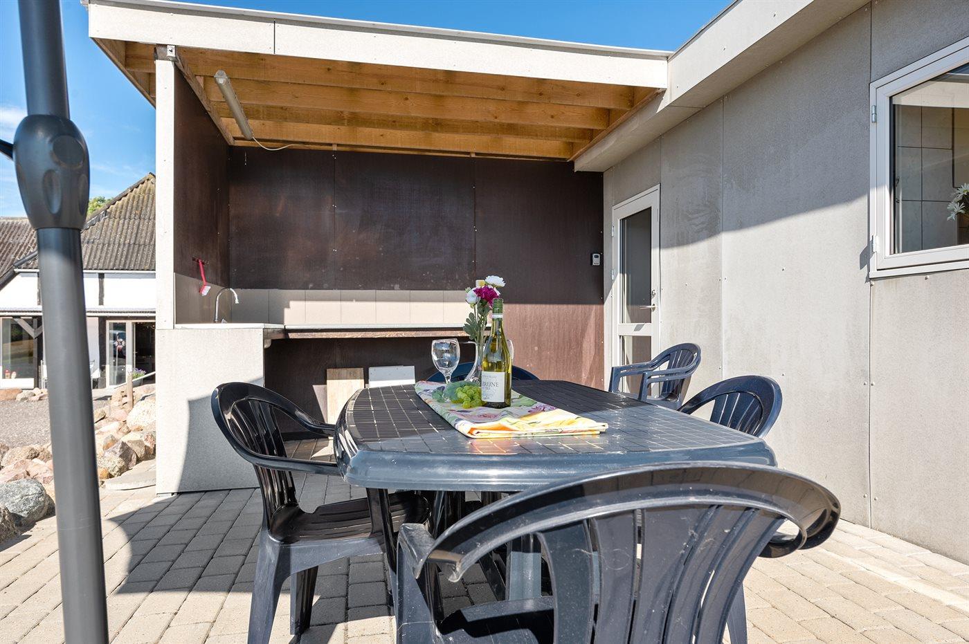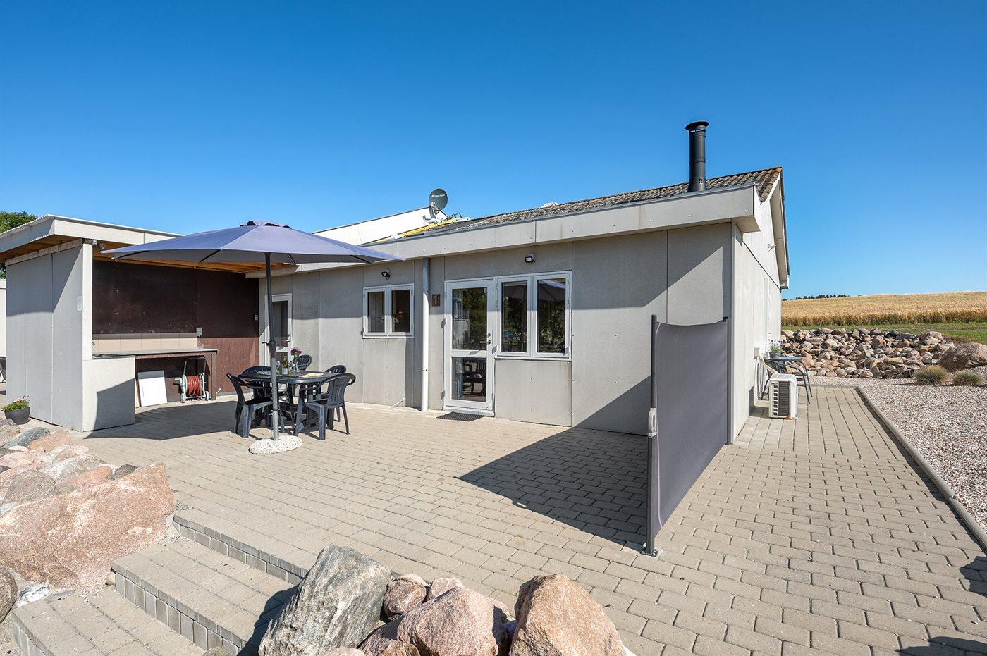 Ferieboligen er beliggende på en 2500 m² stor havegrund. naturgrund. Der er 2500 m til havet. Nærmeste forretning er beliggende i en afstand af 5000 m. Til ferieboligen hører 50 m² terrasseareal. Grill til rådighed. Parkering ved ferieboligen.