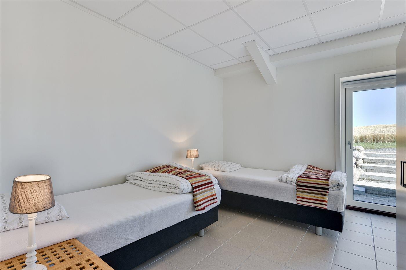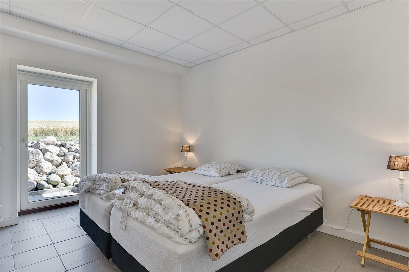 Der er i alt 3 soveværelser. Sovepladserne fordeler sig på: 2 sovepladser i dobbeltseng. 2 sovepladser i enkeltsenge. 2 sovepladser i køjeseng. Derudover er der 1 stk. barneseng.