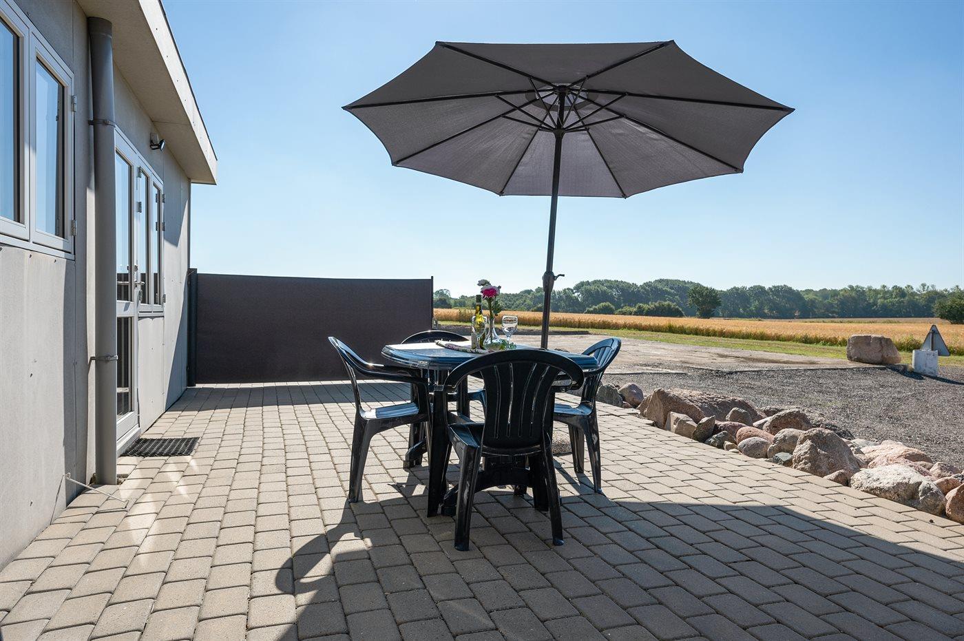 Hyggelig ferielejlighed på Sydlangeland med terrasse, nær fiskemuligheder og naturskønne omgivelser.