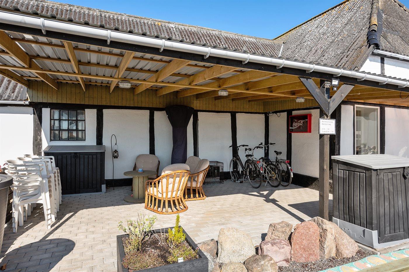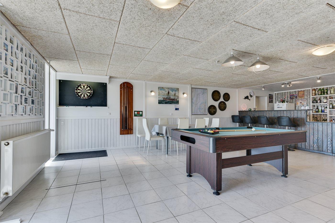 Bemærk: Ved den tilhørende hovedbygning er der et fælles område med mulighed for hyggeligt samvær for børn og voksne, og i et dertil hørende lokale er der indrettet en lille bar, billardbord og dart. Dette lokale kan åbnes efter aftale med ejeren, som bor ved siden af ferielejlighederne.